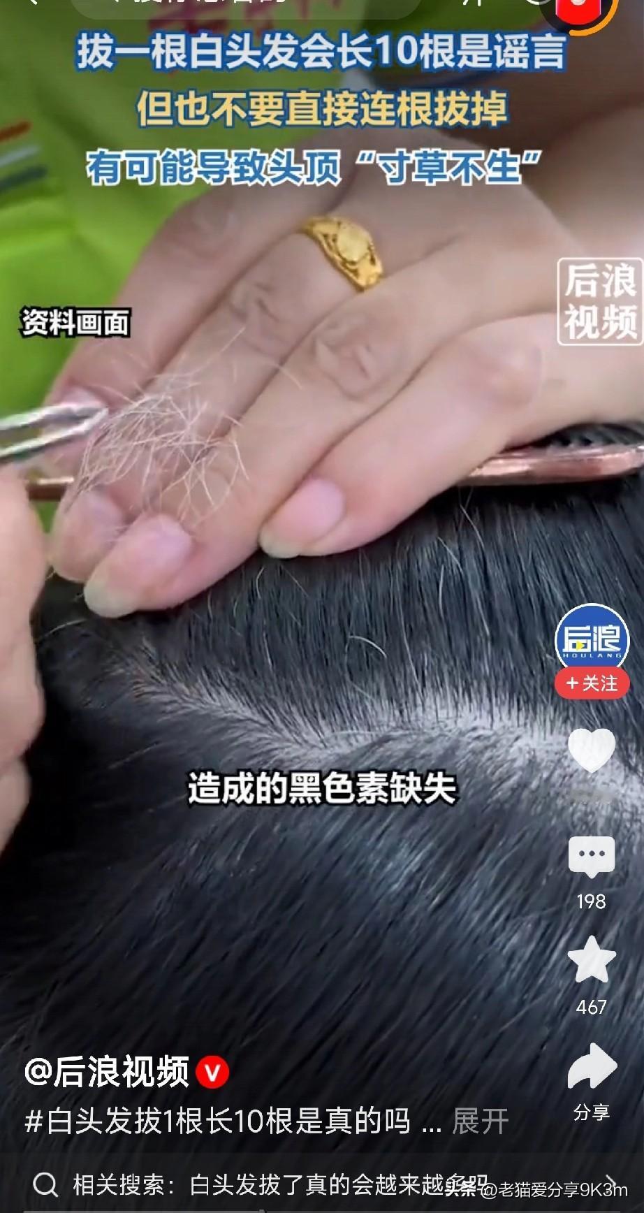 拔一根白头发,真会长出十根? 小时候被这话吓得不轻,真相来了: 原来,“拔一根长十根”根本没科学依据!白头发是因为毛囊里的色素细胞“停工”了,黑色素分泌不足,和拔不拔没关系。 但是直接上手拔真的危险! 用力过猛可能伤到毛囊,轻则发炎,重则……那片可能真就不长头发了! 那有了白头发怎么办? 专家说直接用剪刀贴着头皮剪掉就可以。简单安全,也不怕伤到毛囊。 其实啊,偶尔一两根白发别太焦虑,长期压力大、熬夜、营养不够更容易催生白发。 好好吃饭、早点睡觉,比啥都强! (文章素材来自后浪视频,侵删)