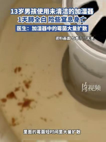 “悲剧还是发生了!”1月22日,河南郑州,一男孩见空气干燥,就把没有清洁的加湿器打开使用,结果一天后开始呼吸困难,送医检查,发现男孩的肺已经全白,里面全是水,像被冻住一样,差点窒息死亡!网友:还敢乱用吗? 1月22日的郑州,13岁的男孩小康(化名)在家写作业时,被干冷的空气呛得不停清嗓子,皮肤也干得起皮,想起家里阳台柜里还放着去年冬天用过的加湿器。 压根没多想,也没看水箱里的状况,直接接了自来水灌满就开了机,还把加湿器搁在书桌旁,对着自己的方向一直吹。 从早上打开到第二天清晨,这台加湿器就没停过,小康在飘着水雾的房间里写作业、吃饭、睡觉,全程没觉得有任何不对劲,只觉得空气润乎乎的,舒服多了。 可谁能料到,第二天一早醒来,小康刚坐起来就猛咳不止,嗓子紧得像被勒住,起初家人还以为是暖气房待久了上火,让小康喝了杯温水就没再管,可没过俩小时,小康的咳嗽越来越剧烈,紧接着开始大口喘气,胸口憋得慌。 连站都站不稳,脸色瞬间煞白,嘴唇也慢慢发紫,整个人呼吸微弱到几乎听不见,家人这才彻底慌了神,抱着小康一路狂飙赶往医院急诊。 到了医院,急诊医生看到小康的状态,立刻开启紧急救治,吸氧、做胸部 CT、查血氧,一系列操作下来,发现小康的双肺在片子上彻底成了一片白,原本清晰的肺组织纹理全看不见了,肺里积满了渗出液,就像被冻住的冰块一样,毫无生机。 当时小康的血氧饱和度只有 76%,而正常人的血氧饱和度要维持在 95% 以上,低于 80% 就属于严重缺氧。 小康的肺部换气功能几乎完全丧失,医生直言,再晚送来十分钟,小康就会因为呼吸衰竭窒息身亡,万幸的是送医及时,暂时从鬼门关拉了回来。 医生解释,这是典型的加湿器肺炎,学名叫过敏性肺炎合并肺部渗出,长期闲置的加湿器水箱和雾化片处于潮湿状态。 本就是霉菌滋生的 “温床”,这台加湿器去年用完后直接塞回柜子,连剩水都没倒,水箱里早就长满了黑曲霉和烟曲霉。 小康直接加自来水开机后,霉菌孢子随着水雾被源源不断地吹到空气中,小康在密闭房间里持续吸入。 这些孢子进入肺泡后,身体的免疫细胞会立刻发起 “攻击”,进而引发剧烈的炎症反应,肺泡被充血水肿产生的渗出液填满,这就是 CT 上 “肺全白” 的原因。 而小康加的自来水,含有的钙镁离子和余氯还成了霉菌繁殖的 “养料”,让霉菌数量在短时间内暴增,加重了对肺部的伤害。 其实这类因加湿器使用不当引发的病例,每年冬季都特别多,并非个例。中国家用电器研究院发布的《冬季加湿器使用安全白皮书》显示,超 78% 的家庭使用加湿器时存在清洁不到位的问题,其中 62% 的家庭会将加湿器闲置数月后直接加水使用,仅 15% 的家庭能做到每周清洁一次。 全国疾控中心的统计数据更触目惊心,每年 11 月到次年 2 月,全国各大医院接诊的加湿器相关呼吸道病患中,儿童占比超 65%,3-14 岁儿童是绝对的高发群体,仅去年 12 月,河南洛阳就有一名 5 岁女童,因使用未清洁的加湿器连续 3 天,引发支气管肺炎,住院一周才好转。 儿童的肺部还处于发育阶段,呼吸道黏膜娇嫩,纤毛运动能力远不如成年人,霉菌孢子更容易黏附在呼吸道黏膜上,进而侵入肺泡,再加上冬季暖气房密闭性强,空气不流通,霉菌孢子无法及时扩散,孩子吸入的浓度会大幅升高,伤害自然会翻倍。 目前小康,经过无创呼吸机辅助呼吸、抗感染和抗炎治疗后,呼吸已经逐渐平稳,脱离了生命危险,但还需要在重症监护室观察治疗。 儿童肺部的修复周期平均为 2-4 周,而他因肺部损伤严重,后续还需要持续监测肺功能,谨防出现肺部纤维化等后遗症,一旦留下后遗症,会直接影响孩子未来的呼吸功能。 加湿器本身是冬季改善室内湿度的好东西,人体最舒适的室内湿度在 40%-60%,合适的湿度能避免呼吸道黏膜干燥,减少咽痛、咳嗽等不适,但前提是必须科学使用。 健康和生命从来都容不得半点马虎,那些看似不起眼的生活小习惯,稍有疏忽就可能酿成无法承受的后果。 别让本应带来舒适的小家电,变成藏在身边的 “隐形杀手”,学会科学使用身边的物品,才是对自己和家人最实在的保护。 对于这件事,您有什么想说的吗?欢迎评论区留言讨论。 信源:洛视频2026-01-23——《13岁男孩使用未清洁的加湿器1天肺全白 险些窒息身亡医生:加湿器中的霉菌大量扩散》