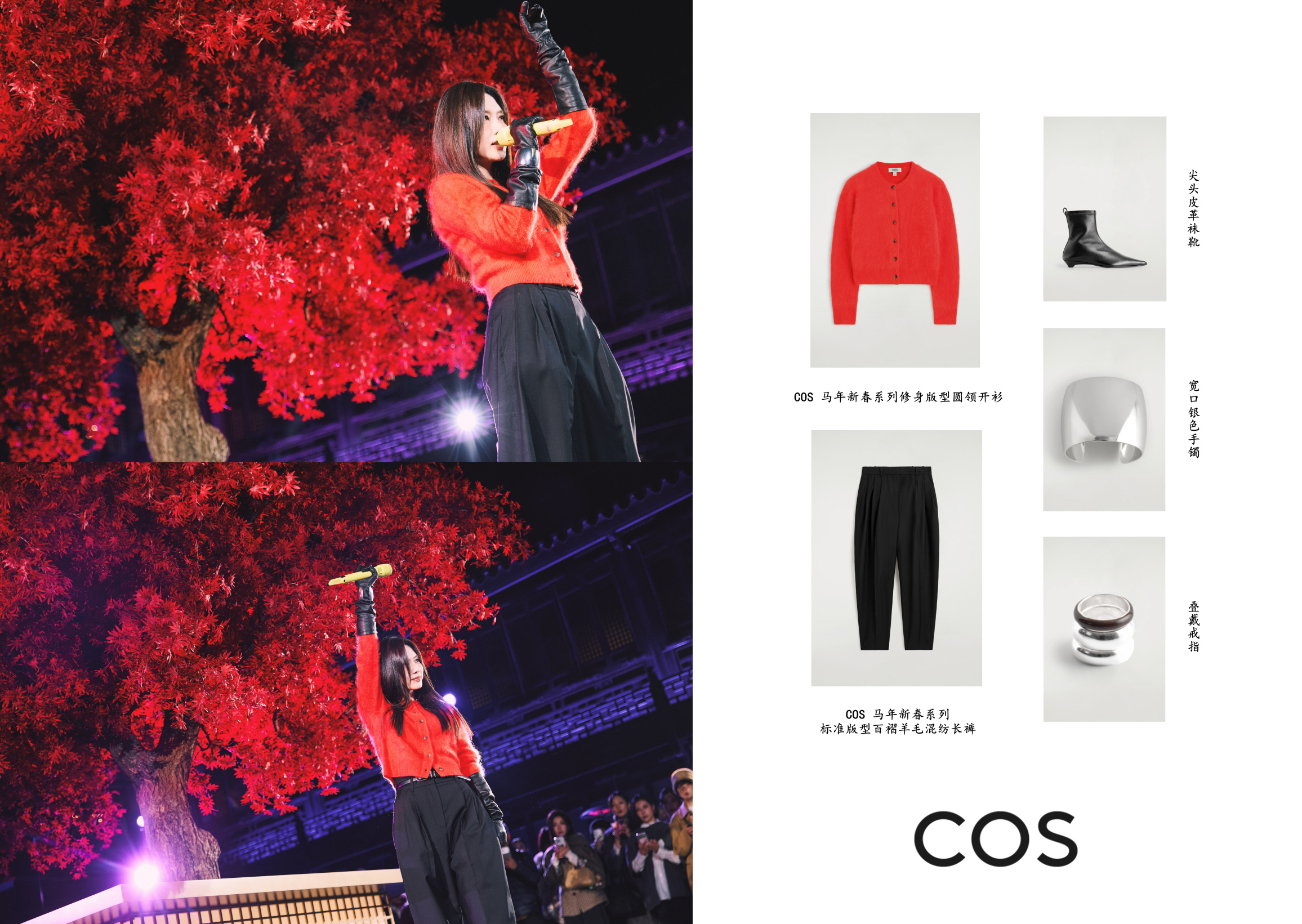 迎马年新春 ,看 COS 焦点 !为迎接马年新春 ,总部位于伦敦的时装品牌 COS 在发布 2026 马年新春系列之际 ,品牌特别于上海市中⼼历史悠久的天后宫带来了 COS 新春限时臻享空间活动 !以中式传统茶室为媒介 ,融入当代美学风尚 ,通过意蕴悠长的茶道 ,在推杯换盏之际 ,与 COS 共启新程 !与此同时 ,COS ⻢年新春系列也已正式推出 ,官⽹ 、小程序及全国线下⻔店皆可选购。以宽松廓形与精致细节 ,升华⽇常着装。COS ⻢年新春系列灵感来源于骏⻢昂然的⽣命⼒ ,流畅的线条舒展于丝⼱ 、棉质配饰与柔软⽺⽑单品之上 ,以静谧优雅的设计语⾔礼赞新春 ,融合传统意蕴与现代设计 ,将鲜活明亮的春⽇⾊彩与沉静内敛的中性⾊调相结合 ,彰显 COS 品牌随性松弛的质感格调。而拉开序幕的⻢年新春限时臻享空间同样颇具看点 ,除了茶道体验工坊 、宋式点茶 、茶韵香囊等环节的趣味设定以外 ,活动更是汇聚了 COS 全球 CEO Daniel Herrmann 及 COS 亚太区董事总经理 Petra Lerch 在内一众高层代表及时尚界与当代⽂化界宾客 ,更有实⼒⼥歌⼿ 、质感⼥演员王霏霏惊喜登台 ,献上特别演出 !探索 COS ⻢年新春系列新作 ,领略传统美学 、艺术演绎与当代⽂化交汇碰撞所带来的创意之旅 ,借由新年之际 ,让我们一同加入进来 !新春限时臻享空间开放时间 :2026 年 1 ⽉ 23 ⽇⾄ 26 ⽇(10:00 ‒ 20:00)