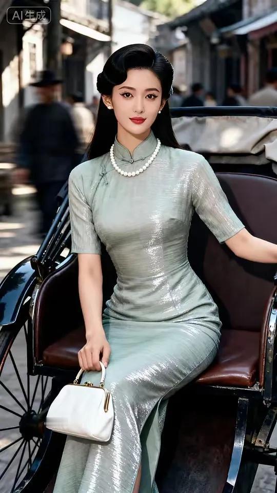 复古风情的街拍,优雅旗袍与老式车马相映成趣。
