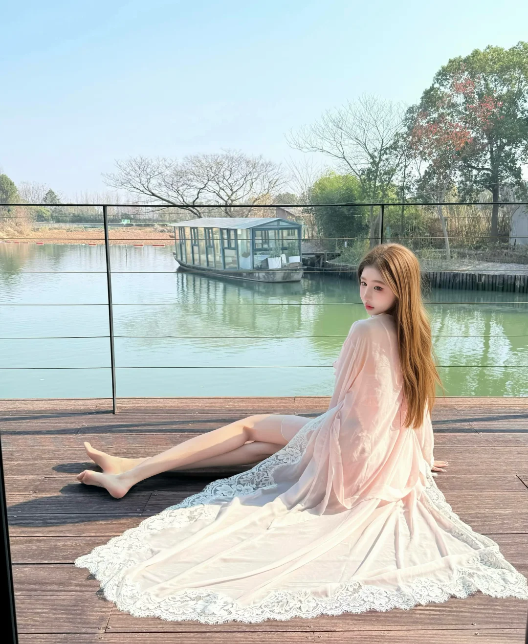 房间超大的落地窗浴缸🛁➕梳妆台➕临水阳台