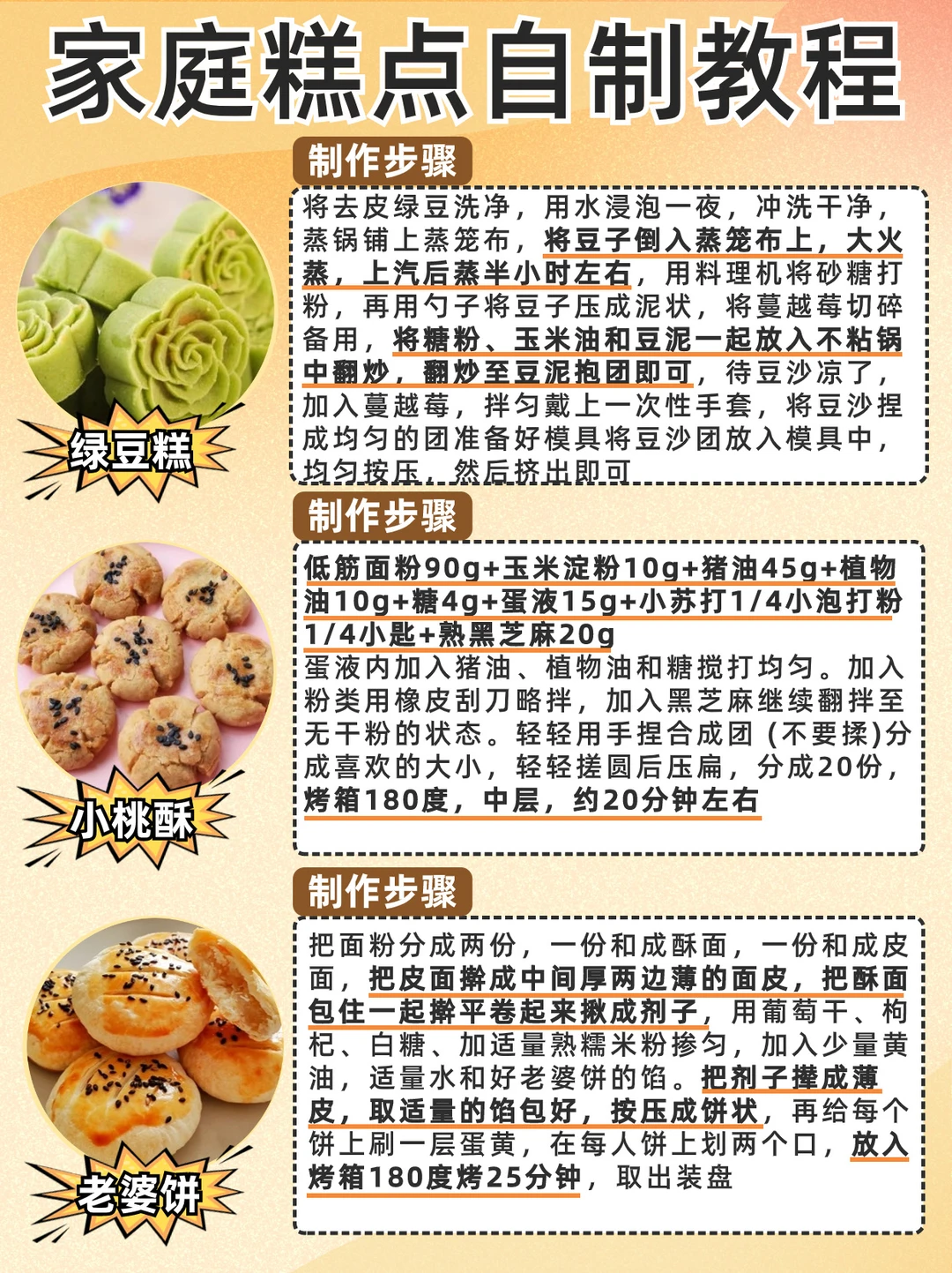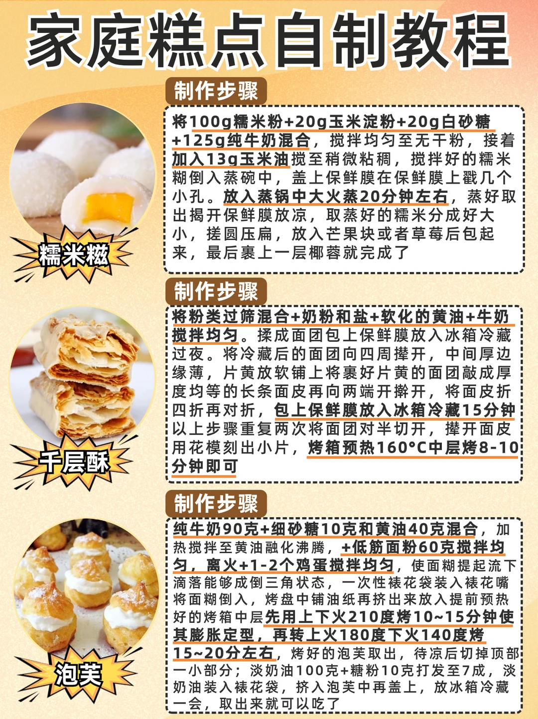 欢迎来到刘百万的频道~ · 家庭自制糕点合集来喽[派对R][派对R]都是日常好吃又好 看的糕点[色色R][色色R]喜欢吃糕点的宝子们赶紧码住[庆祝R] ・ [向右R]家庭自制糕点 ⭐️糯米糍 ⭐️千层酥 ⭐️泡芙 ⭐️桂花糕 ⭐️打糕 ⭐️雪媚娘 ⭐️绿豆糕 ⭐️小桃酥 ⭐️老婆饼 ⭐️驴打滚 ⭐️豌豆黄 ⭐️青团 ⭐️花生酥 ⭐️凤尾虾球 ⭐️芝麻球 ⭐️杯子蛋糕 详细内容👀上方图文👆 · 今天就分享到这啦~ 接下来将持续更新更多家居干货内容和厨房小知识