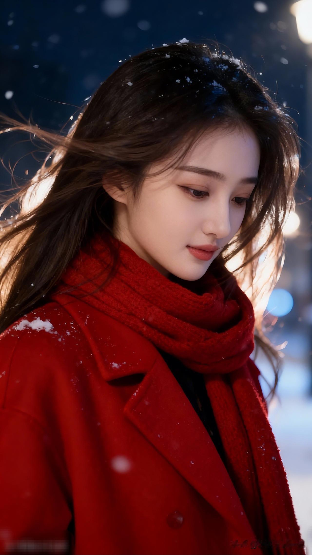 冬日暖阳下的温柔少女,暖色调的围巾与发丝相映成趣,尽显冬日温暖与甜美。看看气质女