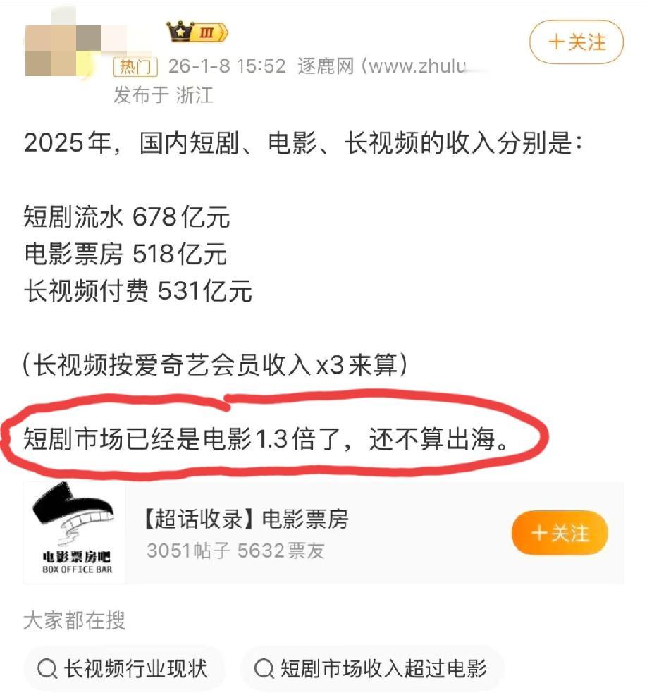 2025年国内短剧市场的流水已经是电影的1.3倍,这你敢相信吗?反正我是不信的! 有网友表示:个人感觉短剧这样发展下去,市场超过电影是必然的。现在就看有关部门如何对短剧市场进行监管了? 而关于“短剧为何会在短短几年瓜分了这么大的市场”这个话题,网上给出了近乎一致的观点:电影票太贵,长剧没时间看,而且长剧感觉也没有好看到哪里去!!! 评论区诸君,你们觉得呢?