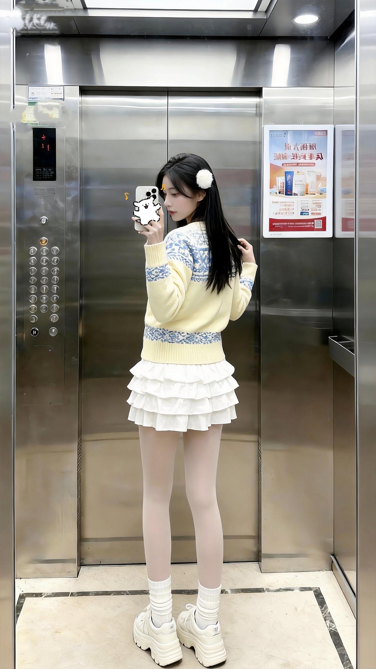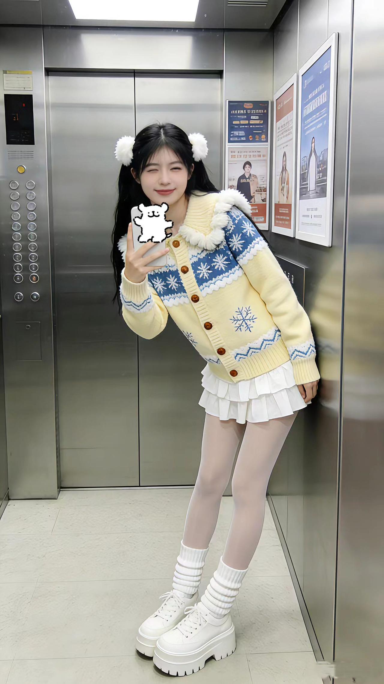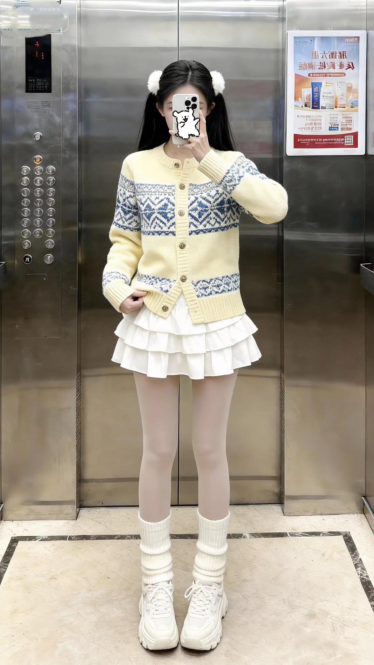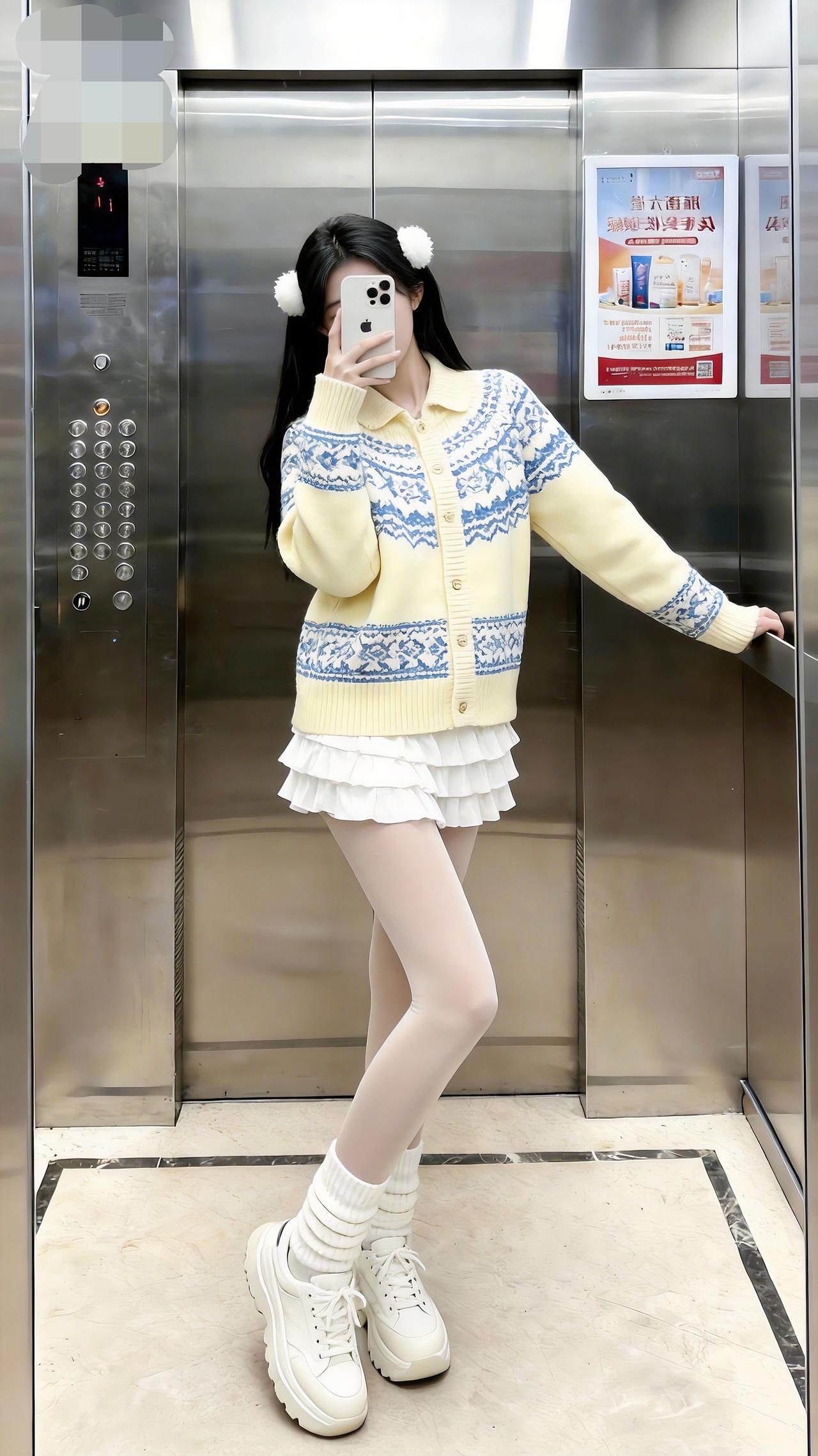 双马尾+蛋糕裙,甜得连空气都变暖了!这种软妹风你们爱了吗?过年穿什么 温柔穿搭 光腿神器 电梯拍照