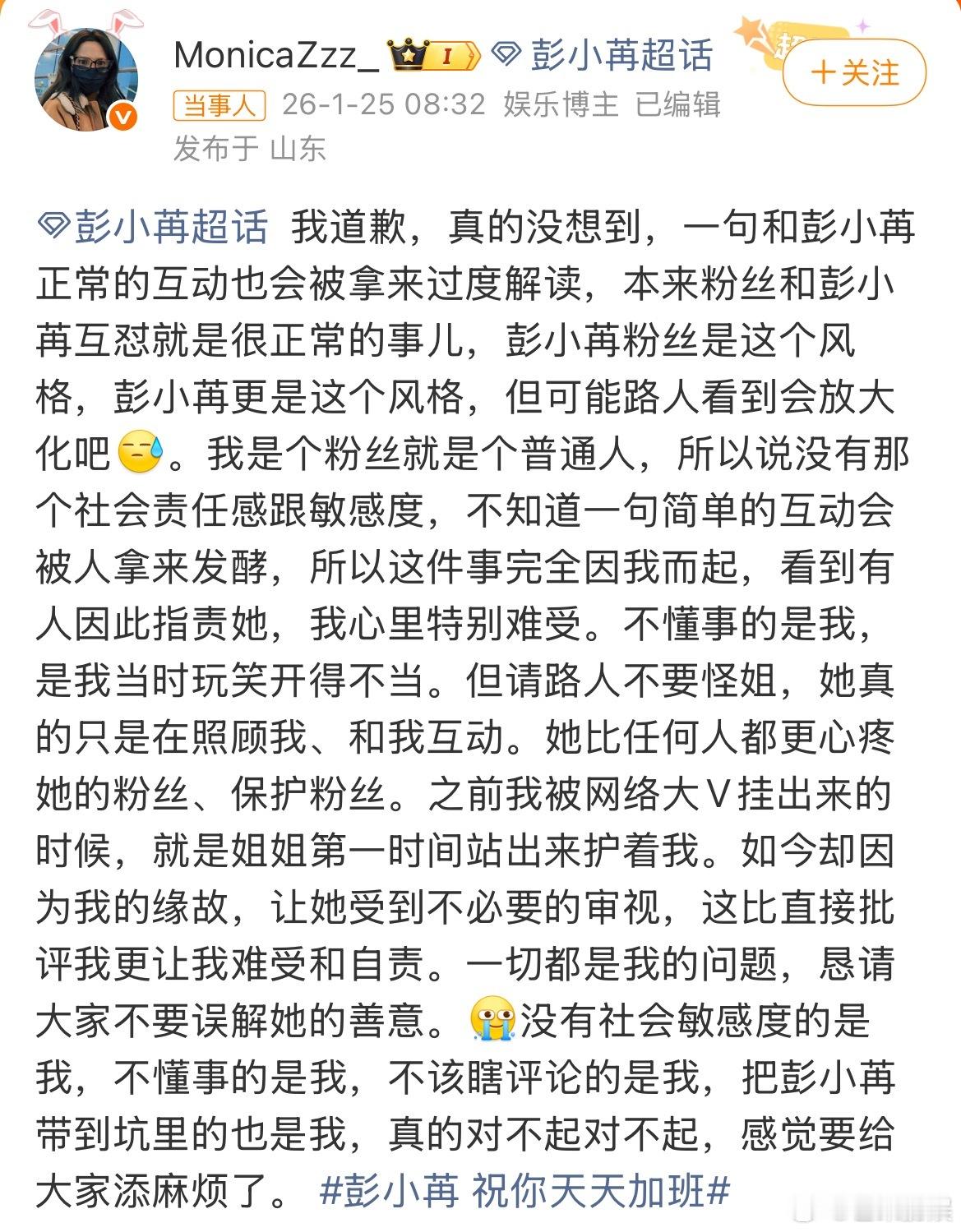 彭小苒 祝你天天加班怪不得说明星活人感少呢粉丝没有玻璃心,一些网友有玻璃心了多点