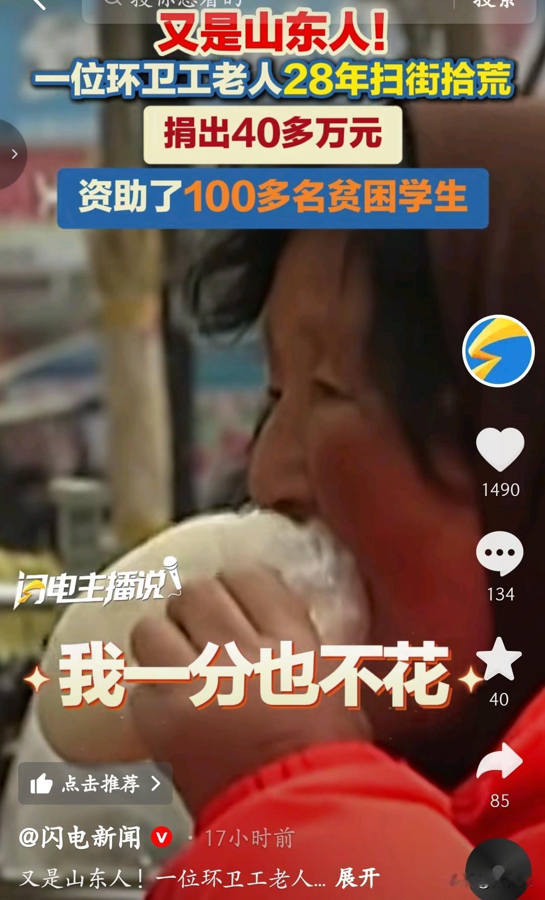 山东这位环卫工阿姨的故事,真的让人破防。28年扫街拾荒,从青春到白发,一分一分攒下40多万,全捐给了100多个贫困学生。自己啃着馒头说“我一分也不花”,不是没钱,是把所有的温暖都给了素不相识的孩子。 她没什么惊天动地的本事,却用最朴实的行动告诉我们:善良从来不是用金钱衡量的,而是看你愿意为别人付出多少。这40万,是她扫过的每一条街、捡过的每一个瓶子,更是100多个孩子的希望。比起那些热搜上的流量,阿姨的故事,才是真正值得我们记住的光。