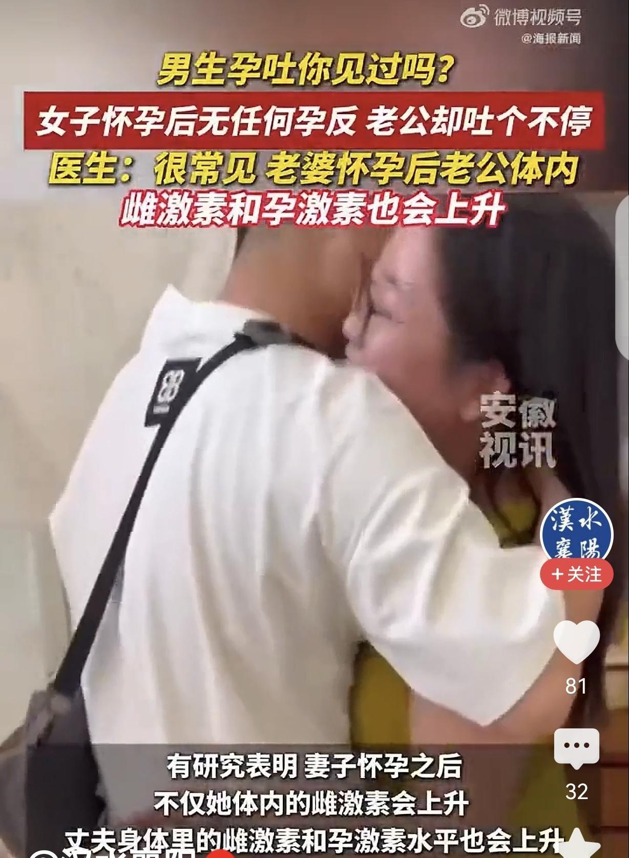 “神奇的女孕男反!”山西,一女子老公突然对着马桶狂吐,他问女子是不是怀孕了?女子用验孕棒一测,竟然真是2道红杠,怀孕6周了,女子彻底懵圈,她怀孕了啥感觉没有,丈夫却出现孕反症状,这是咋回事?两口子赶紧去医院,医生却说,女子的丈夫体内雌激素和孕激素上升。女子惊的合不上嘴巴。 杨女士想当妈妈,肚子却一直没动静,她也想开了,她和孩子也是需要缘分的,不能强求,慢慢来。 这天,杨女士的丈夫李先生突然胃里翻江倒海,他立马冲进卫生间,对着马桶狂吐,可把杨女士吓得不轻。 如果说丈夫吃坏了肚子,可他们夫妻吃的是一样的饭菜,为啥她没事? 正在杨女士懵圈时,丈夫突然问她是不是怀孕了?他怎么感觉自己像个孕妇,出现孕反症状。 杨女士哑然失笑,很显然,丈夫是在开玩笑,杨女士倒是巴不得自己有孕反,那就说明她就有资格做妈妈了。 可说者无意,听者有心,杨女士明知道丈夫在调侃,但她还是鬼神神差的买了验孕棒,这一测不要紧,她瞬间惊呆了,她竟然真的怀孕6周了,可她却毫无感觉。 哪个女子怀孕没有孕反呀,都吐的稀里哗啦的,可杨女士却恰恰相反,她不但一点都不恶心,还能吃能睡,所以,自己怀孕了都不知道。 但奇怪的是,为啥自己怀孕,丈夫却出现孕反症状?他如果不吐,杨女士都想不起来去买验孕棒,也不知道自己成功受孕。 夫妻俩思来想去,决定去医院看医生,医生告诉夫妻俩,李先生属于拟娩综合征。 夫妻俩面面相觑,啥叫“拟娩综合征”呢?医生说,杨女士怀孕后,李先生体内的雌激素和催乳素就会升高,所以他出现孕反症状。 有人调侃,老婆怀孕老公吐,媳妇难受丈夫抗,这个男人就是好,疼爱媳妇吐断肠。 短剧中的剧情真的出现在了现实中,真是真爱啊! 这“女孕男反”的事儿可太稀罕啦,让人忍不住感叹爱情的奇妙力量!老婆怀孕,老公跟着吐,这看似荒诞,实则满满都是爱。 在生活里,好多人觉得怀孕就是女人一个人的事儿,承受孕吐、身材走样等各种痛苦。 可李先生倒好,老婆没孕反,他自己先“遭罪”了,这背后不就是对老婆深深的心疼和在乎嘛!他身体上出现孕反,其实是在情感上和老婆紧紧相连,仿佛在说“我陪你一起经历”。 这种“拟娩综合征”可不常见,它就像一面镜子,照出了夫妻间真挚的感情。 在现在这个快节奏的时代,很多夫妻感情变得平淡,像这种同甘共苦、相互陪伴的例子就显得格外珍贵。 李先生的反应也提醒咱们,爱情不是嘴上说说,而是在生活中的点点滴滴里体现。 他用自己的方式诠释着对老婆和未来宝宝的爱,这样的男人值得点赞! 对此,你怎么看?