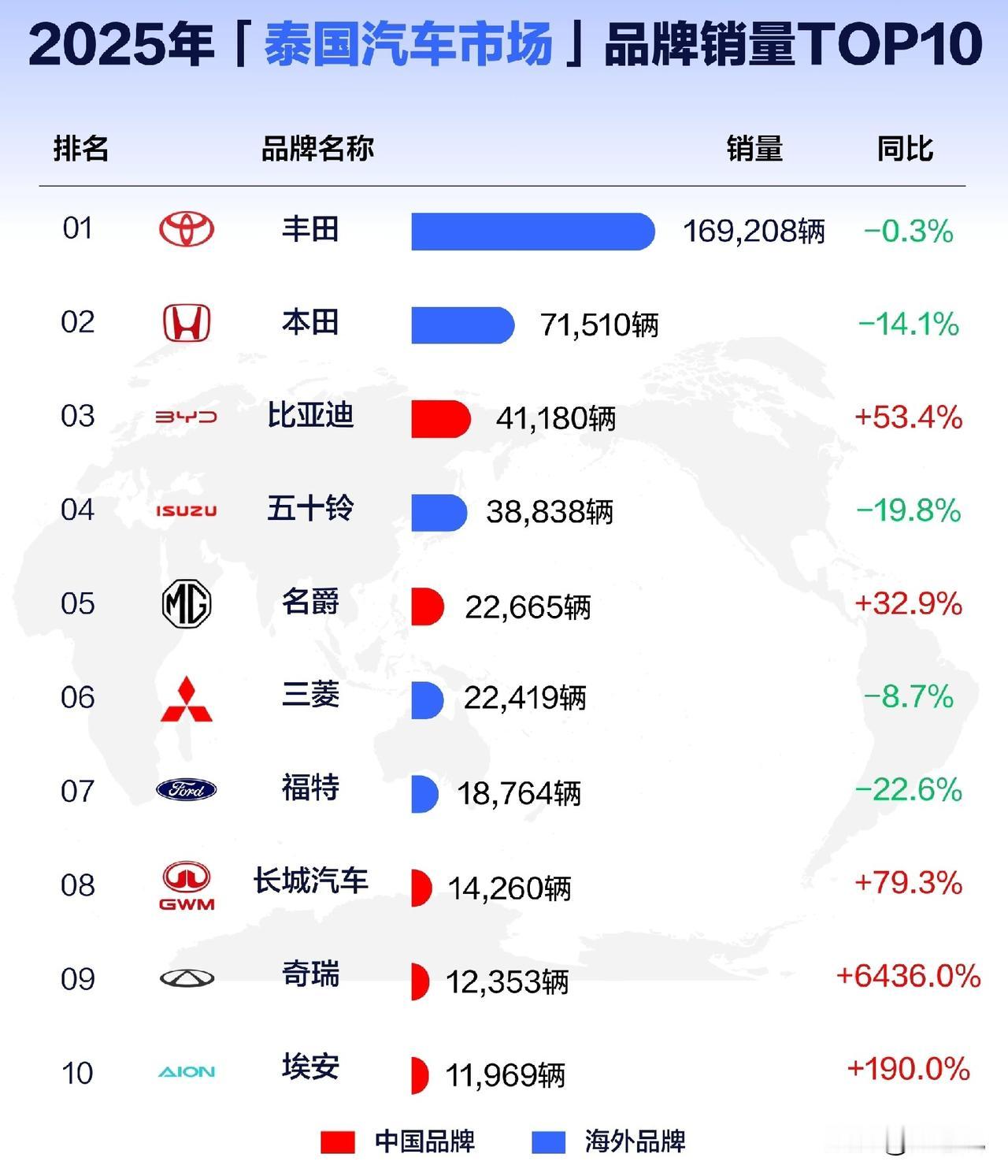 比亚迪25年进入泰国汽车销量榜前三了。 不过被自家兄弟们分流了,增速一般。本来有机会直冲第二的[祝福] 今年各家会卷的更厉害。 一来一回又是不挣钱,赚个吆喝[祝福]