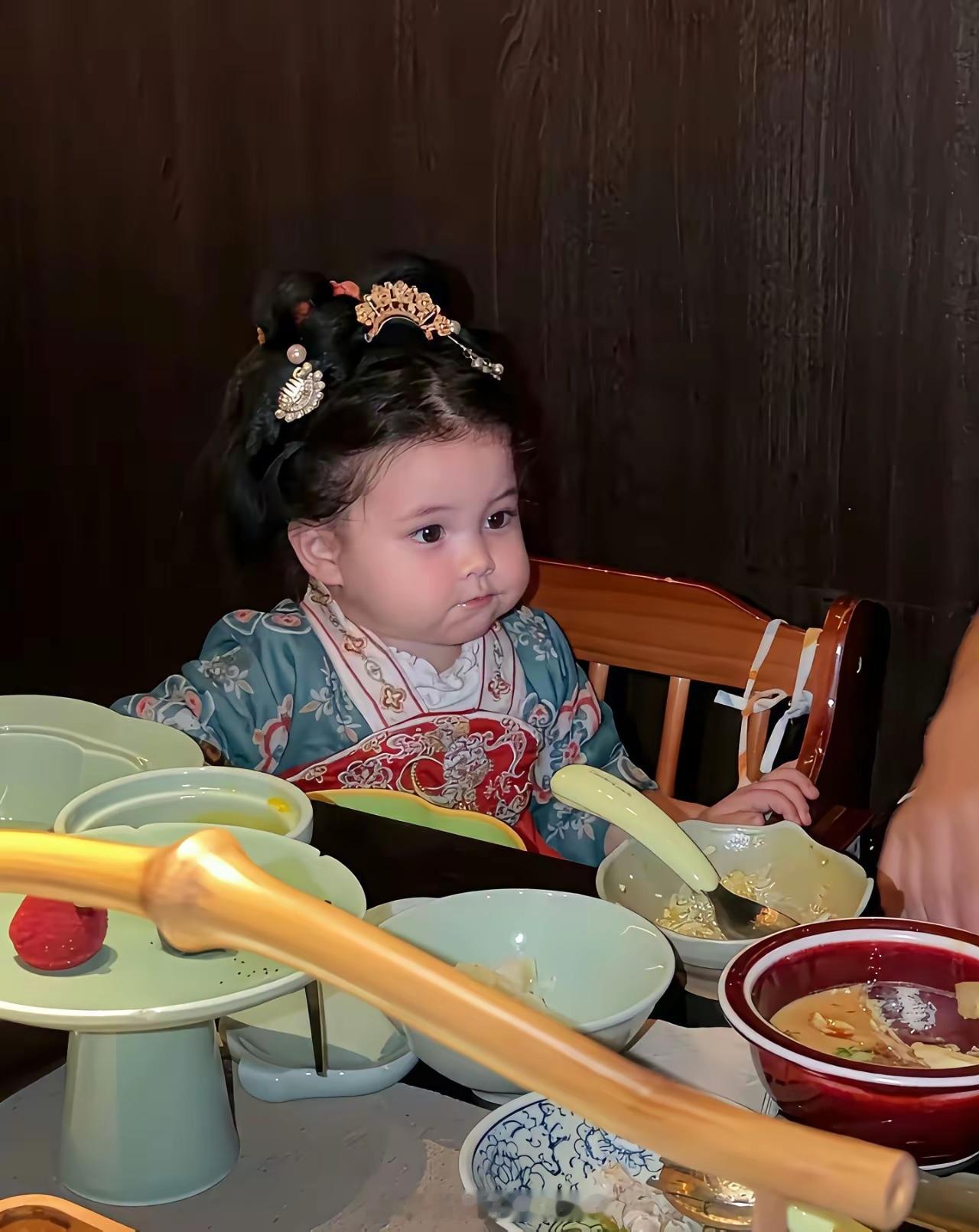 韩安冉不讨喜,但她的小女儿优米真的好可爱啊,穿上古代服饰萌化了,脸蛋肉嘟嘟,可爱无敌。
