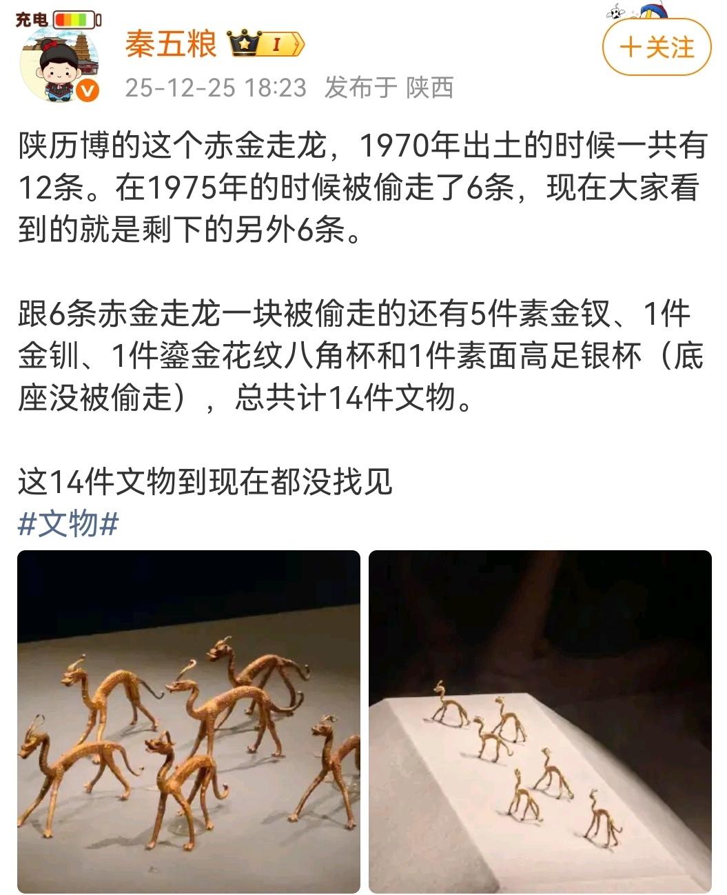国内的文物保护之路任重道远。 (图一)陕西历史博物馆保管的出土赤金走龙,原来12条,现在只剩6条了,少了6条,给弄丢了。 (图二)南京博物院的前徐院长,视博物馆的库藏如私人藏品,被人捐赠的文物,说处理就处理掉了,南博还保管着的故宫南迁文物,据说一直没打开过,这账面上的文物还存在不存在,谁敢打破砂锅问到底?