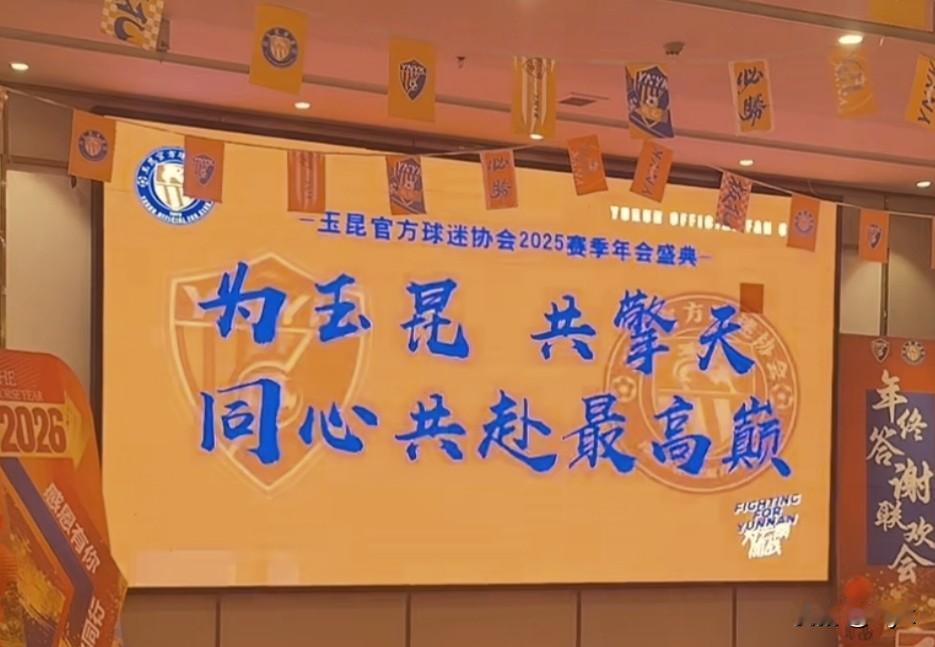 为玉昆,为云南! 保八争六,干就完了! 今晚的玉昆球迷协会年会, 橙色灯光里全是云南球迷的热血。 “为玉昆、 共擎天 、同心共赴最高巅”, 这不仅是一句标语, 更是我们和球队的共同誓言。 2025赛季, 玉溪高原主场只输3场, 这份“为云南而战”的底气, 我们带到了2026赛季。 今晚明确了新赛季目标, 保八争六, 足协杯全力冲击! 克勒伯放话要轰25-30球, 乔迪带着徐新、石柯等强援就位, 玉溪高原的橙色风暴即将再次席卷中超。 不管是玉溪高体的晚风, 还是远征客场的征途, 我们都会站在玉昆身后, 为云南而战, 为那抹橙色拼到最后!