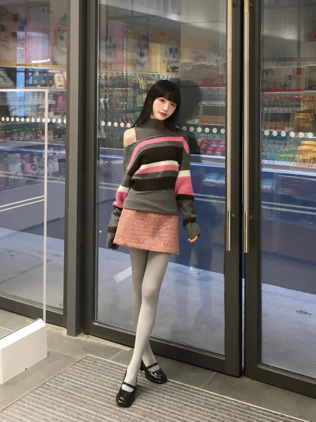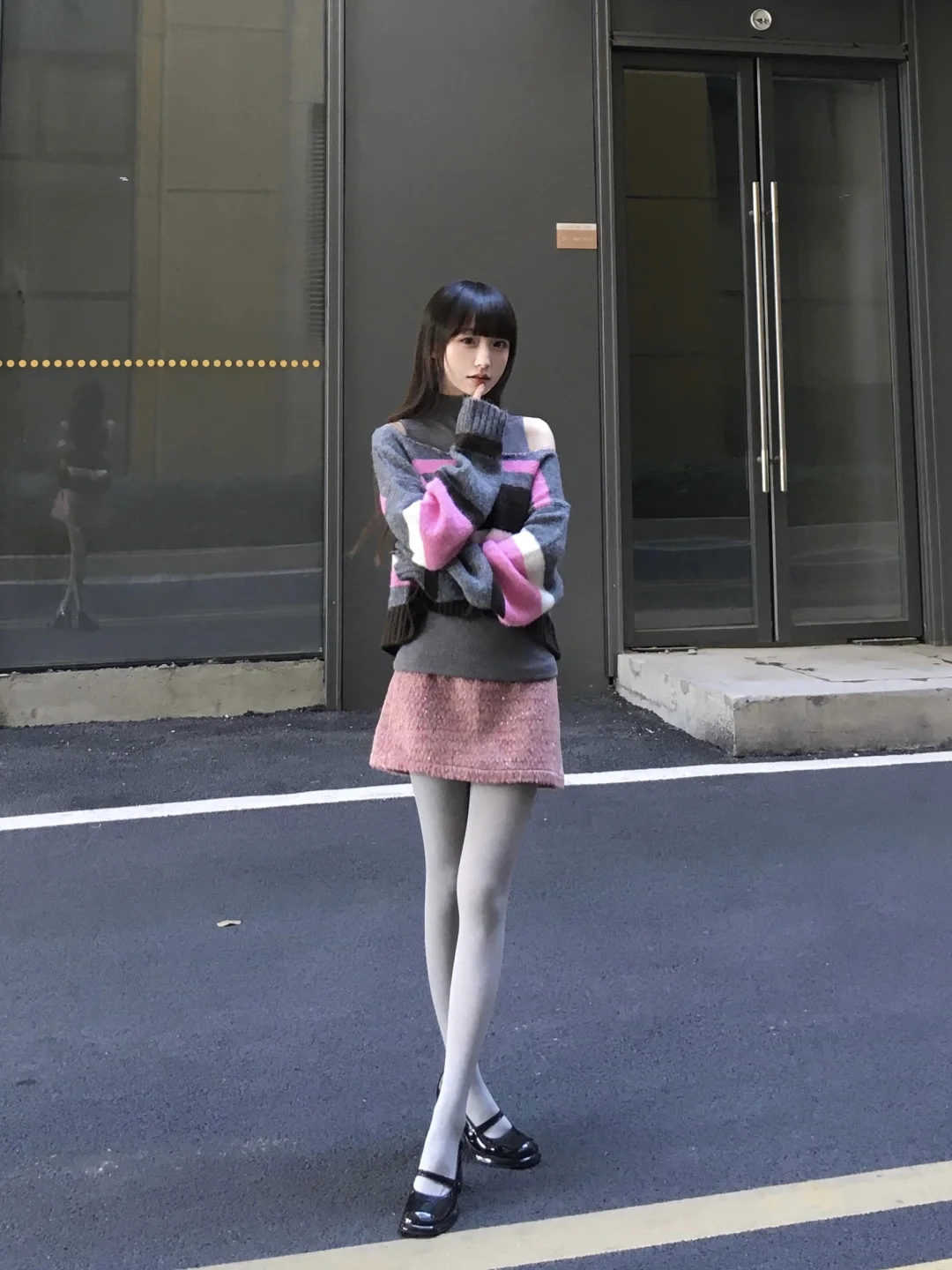 温柔粉嫩少女风,粉色毛衣搭配蕾丝围巾,甜美动人!💖✨