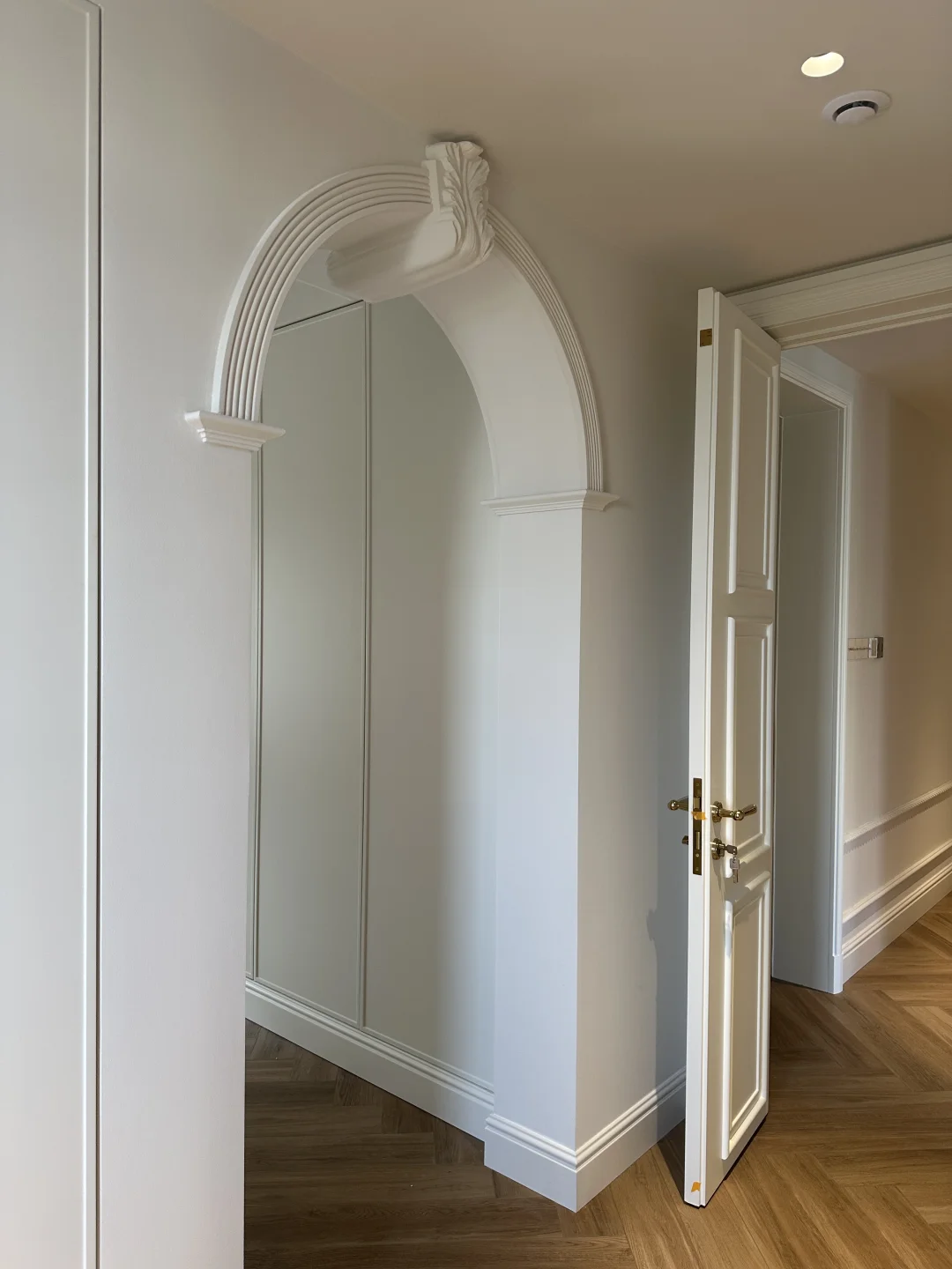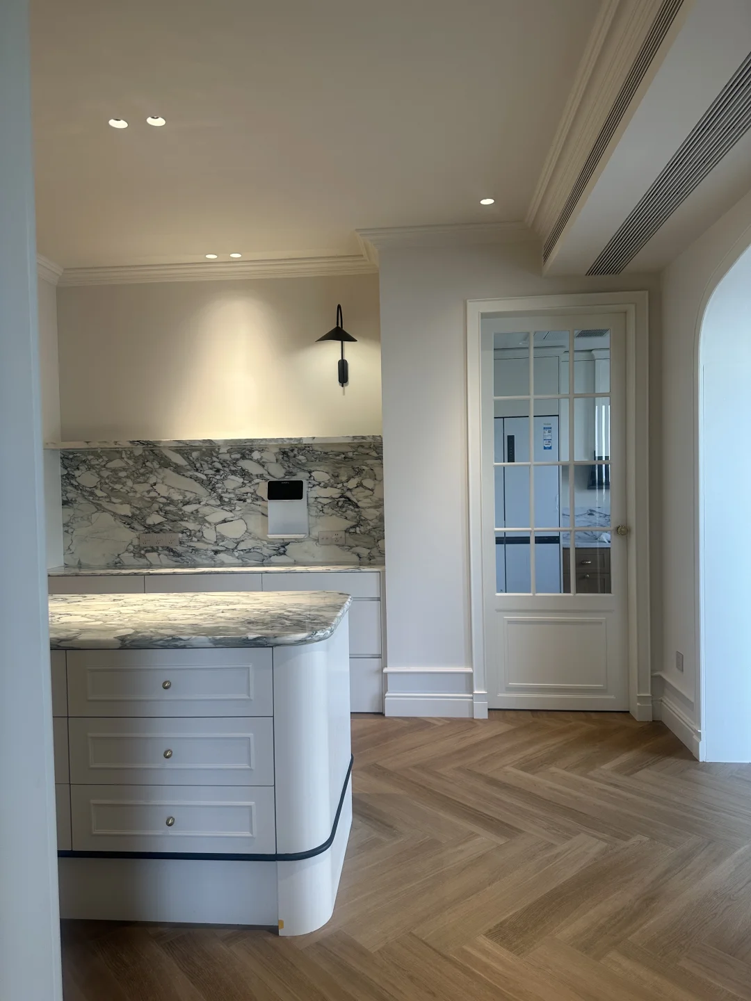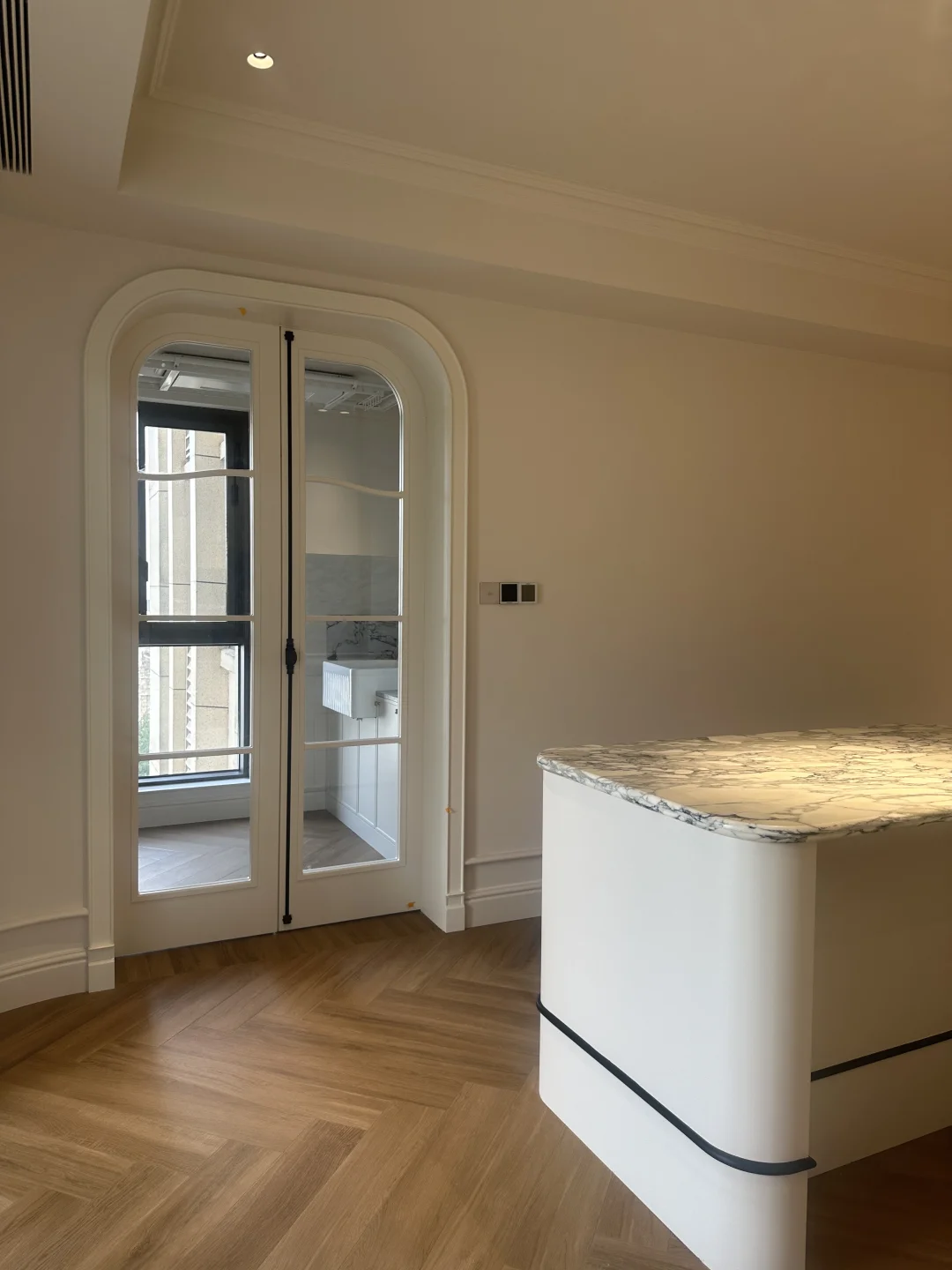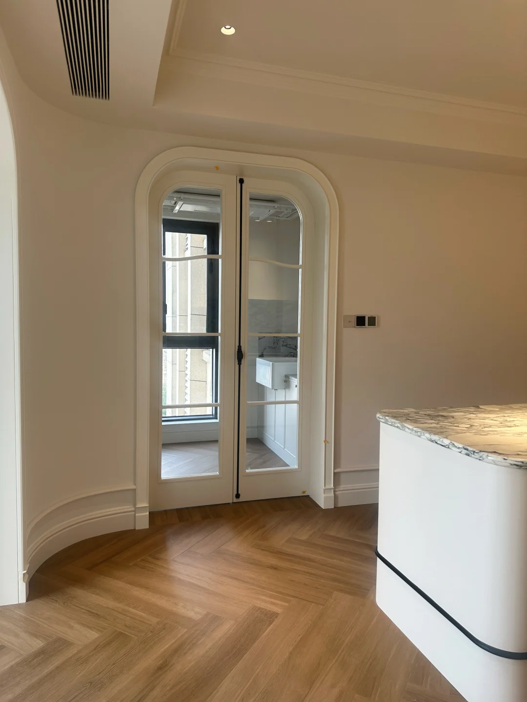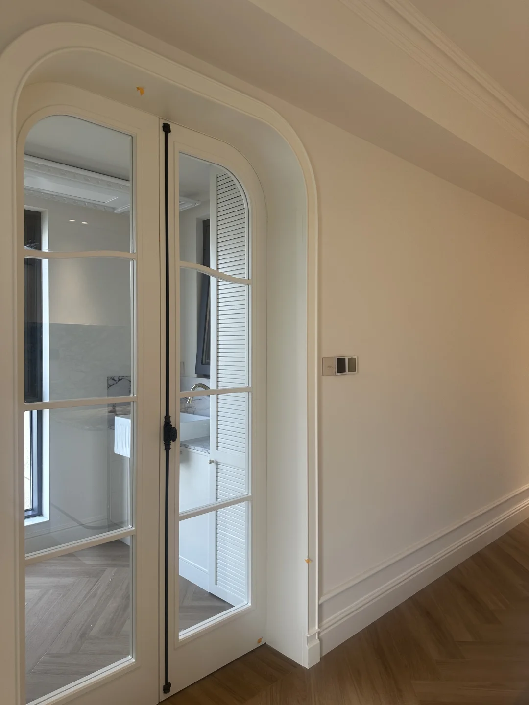 看似“空无一物”的极 简法式,每个设计都是细节 ▫️ 石膏线 梁托|拒绝模版,自己设计开模定制,线条与比例都是安静的低语。 ▫️ 壁炉|自己设计,它是客厅的呼吸感中心,而非装饰 ▫️ 入户门套|GRG模型重新组合,形成新的结构语言,入门即是仪式。 ▫️ 双开门|通往私密空间的仪式感,门型、线条、尺度,全都为空间量身原创。 . . .