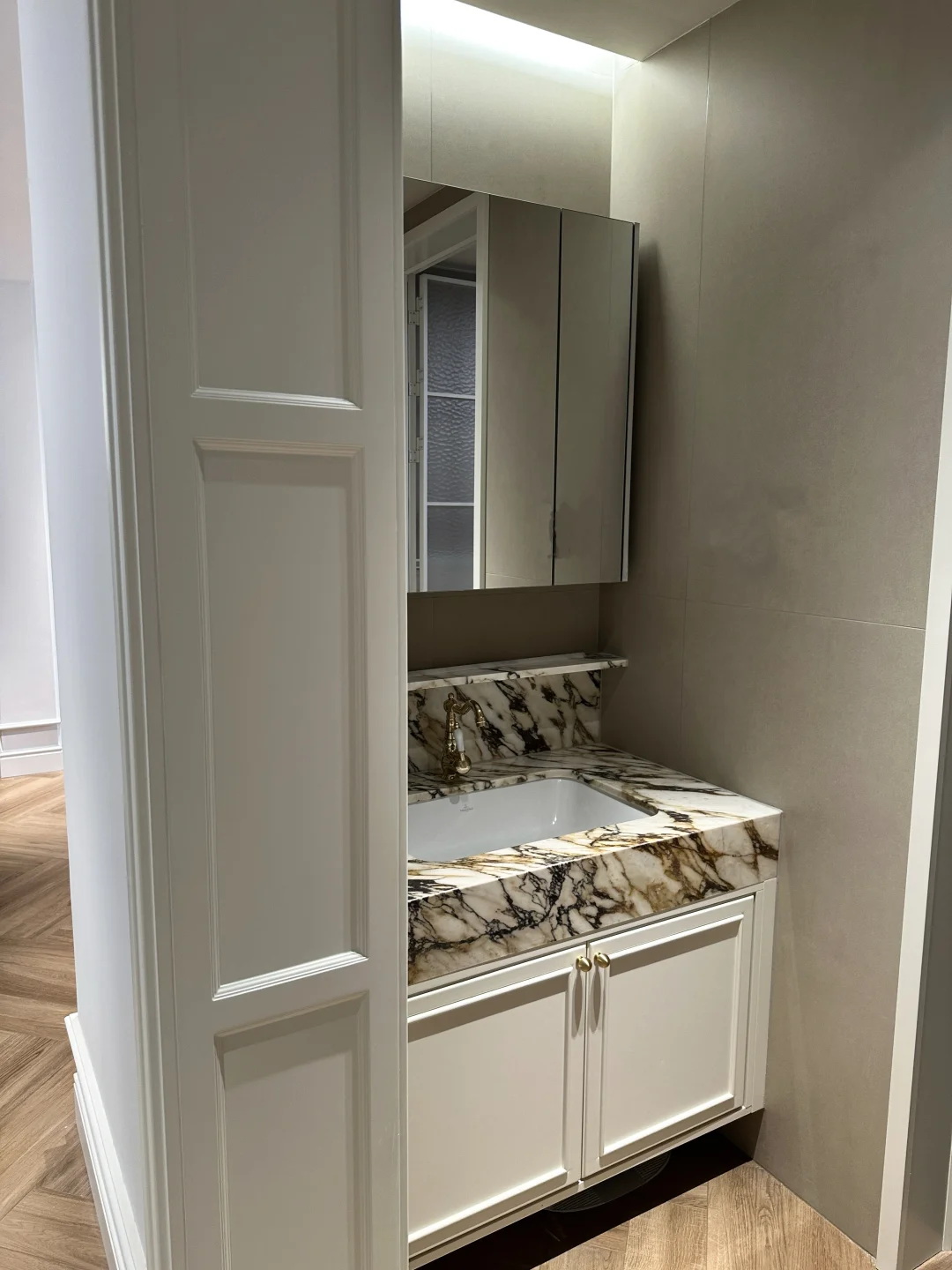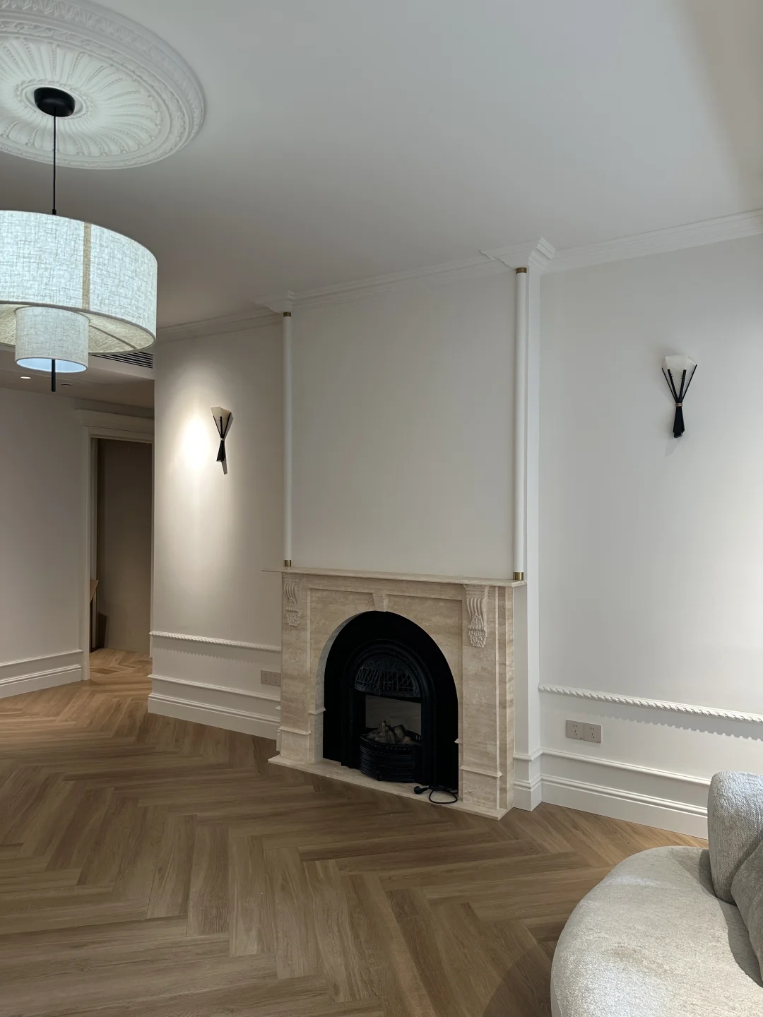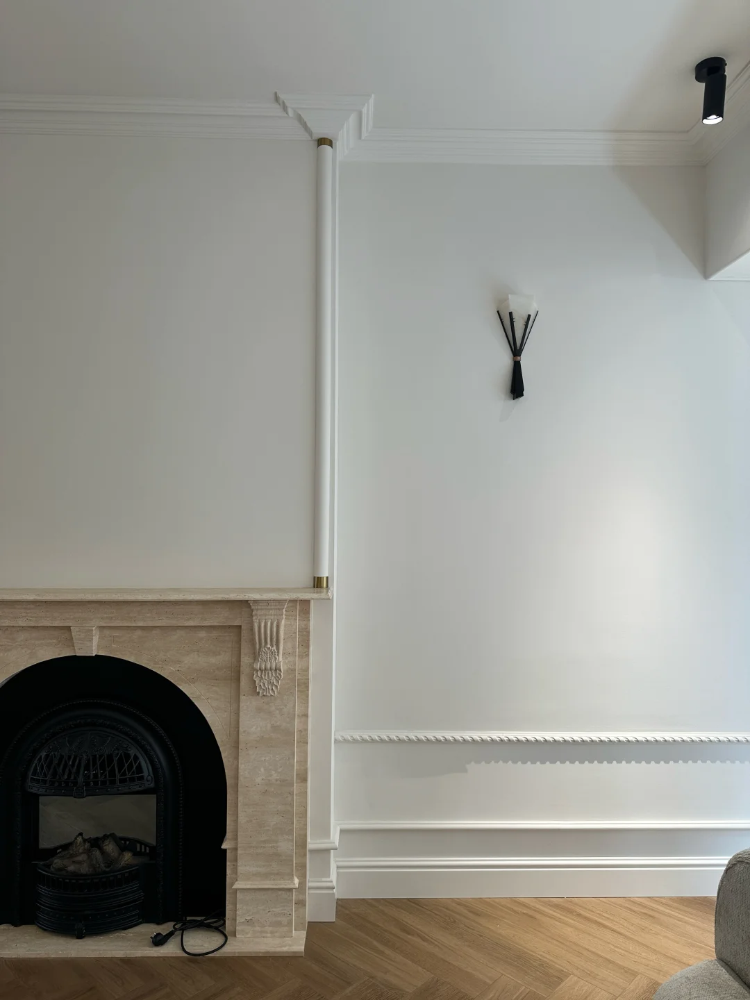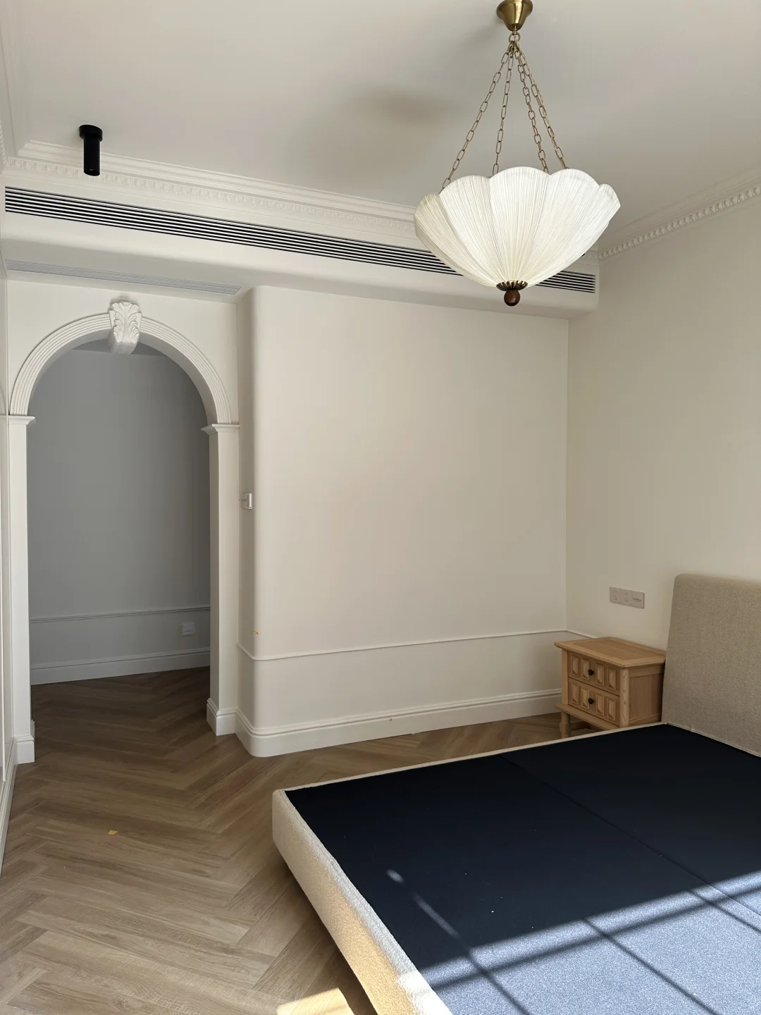 看似“空无一物”的极 简法式,每个设计都是细节 ▫️ 石膏线 梁托|拒绝模版,自己设计开模定制,线条与比例都是安静的低语。 ▫️ 壁炉|自己设计,它是客厅的呼吸感中心,而非装饰 ▫️ 入户门套|GRG模型重新组合,形成新的结构语言,入门即是仪式。 ▫️ 双开门|通往私密空间的仪式感,门型、线条、尺度,全都为空间量身原创。 . . .