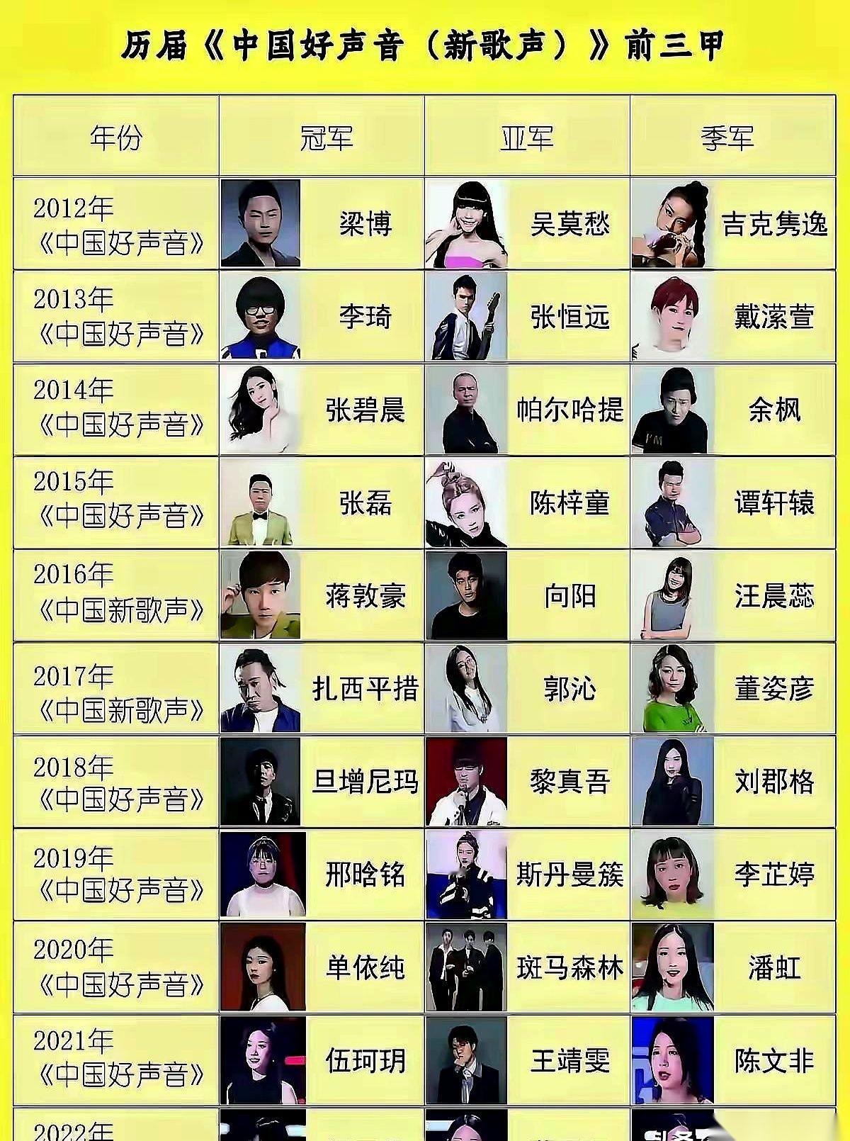 算了一笔账,吓我一跳。 整整11年的《好声音》,前三名加起来33个人,你现在还能