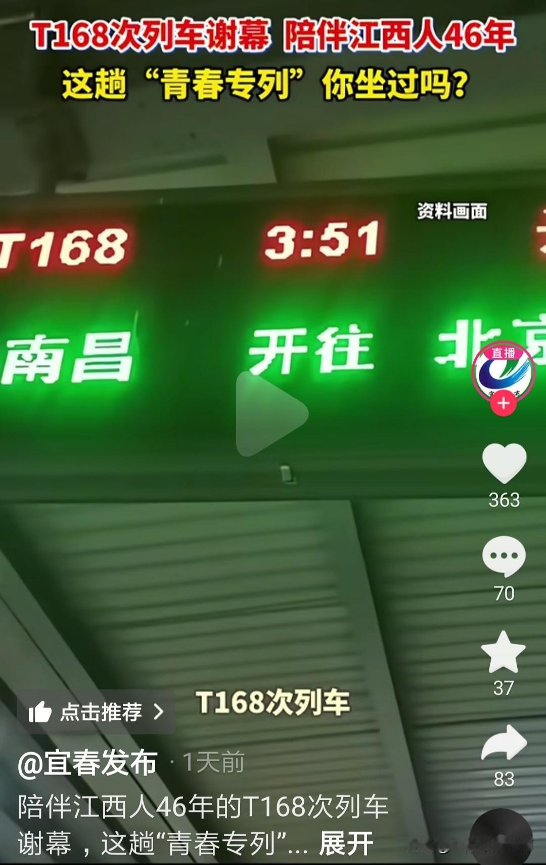 绿皮火车将逐渐退出铁路运行,取而代之的是高铁与动车。以后再也看不到铁道线上飞驰的绿皮火车,想坐也坐不到了。 据悉,南昌火车站始发南昌→北京T168次列车,于1月25日跑完最后一趟车退出。广州站k303次绿皮火车,1月26日也是最后一趟车。 绿皮火车的谢幕,标志着我国火车将全面进入高速时代。但个人认为,保留绿皮火车还是很有必要的。高铁与动车虽然速度快,缩短了行程,但价格是普速车的几倍,再说有的人就喜欢坐绿皮火车,看一看沿途风景。 没有急事不赶时间,咱普通百姓都会选择坐绿皮火车。你想想,坐一趟车,能省下几百块钱多好,大家说说是不是这么回事?