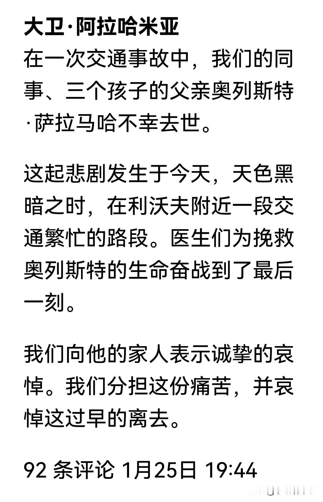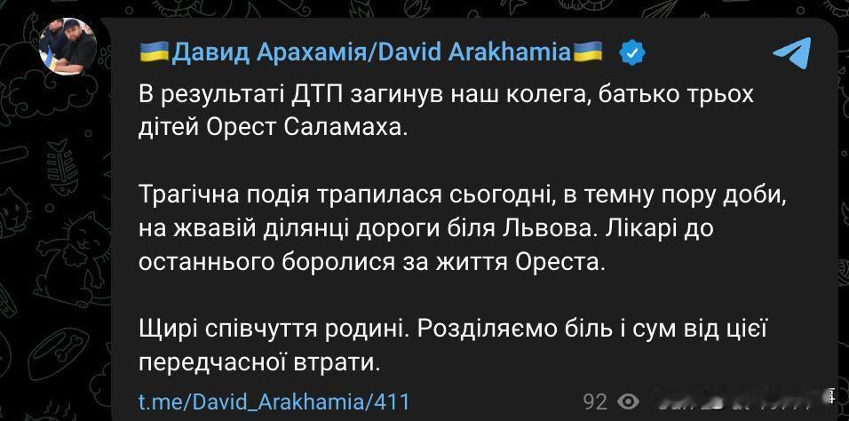 当地时间1月25日,乌克兰最高拉达议员奥列斯特·萨拉马哈在利沃夫市附近遭遇车祸身亡。 事发时,他驾驶一辆四轮摩托车逆向行驶,与一辆公交车迎面相撞。