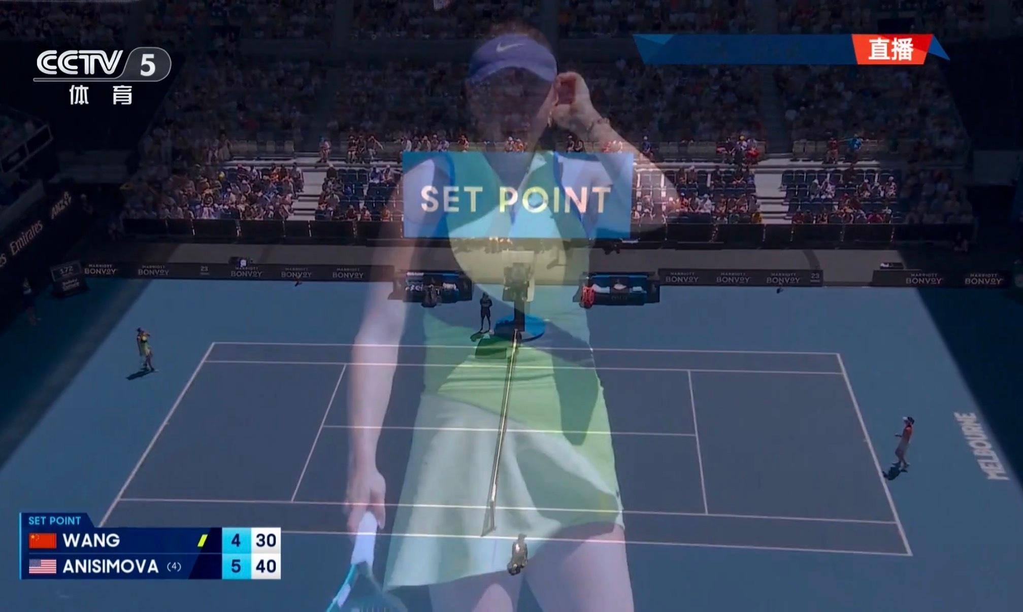 王欣瑜vs阿尼西莫娃 王右逃过一个盘点保发,首盘5-5!澳网2026