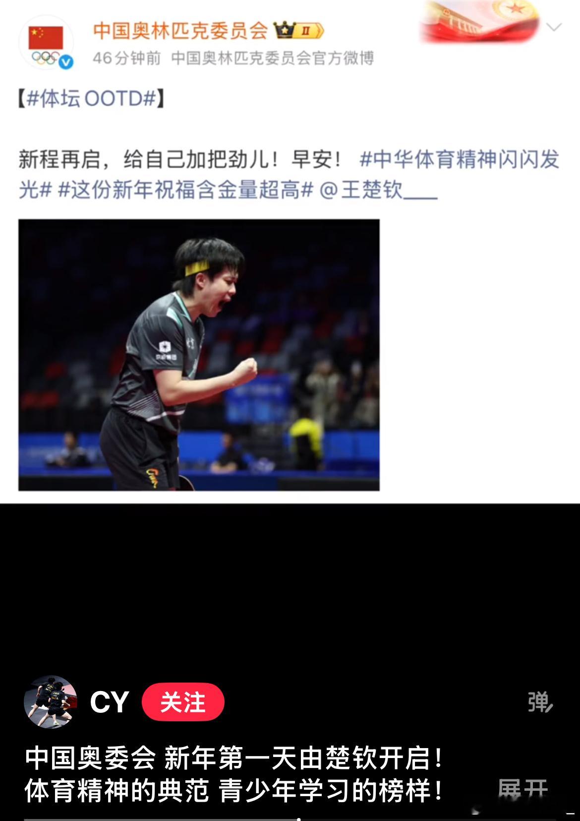 腊八节中国奥林匹克发了王楚钦中国男乒领军人物王楚钦2026顺顺利利,健康涨球,再创佳绩!