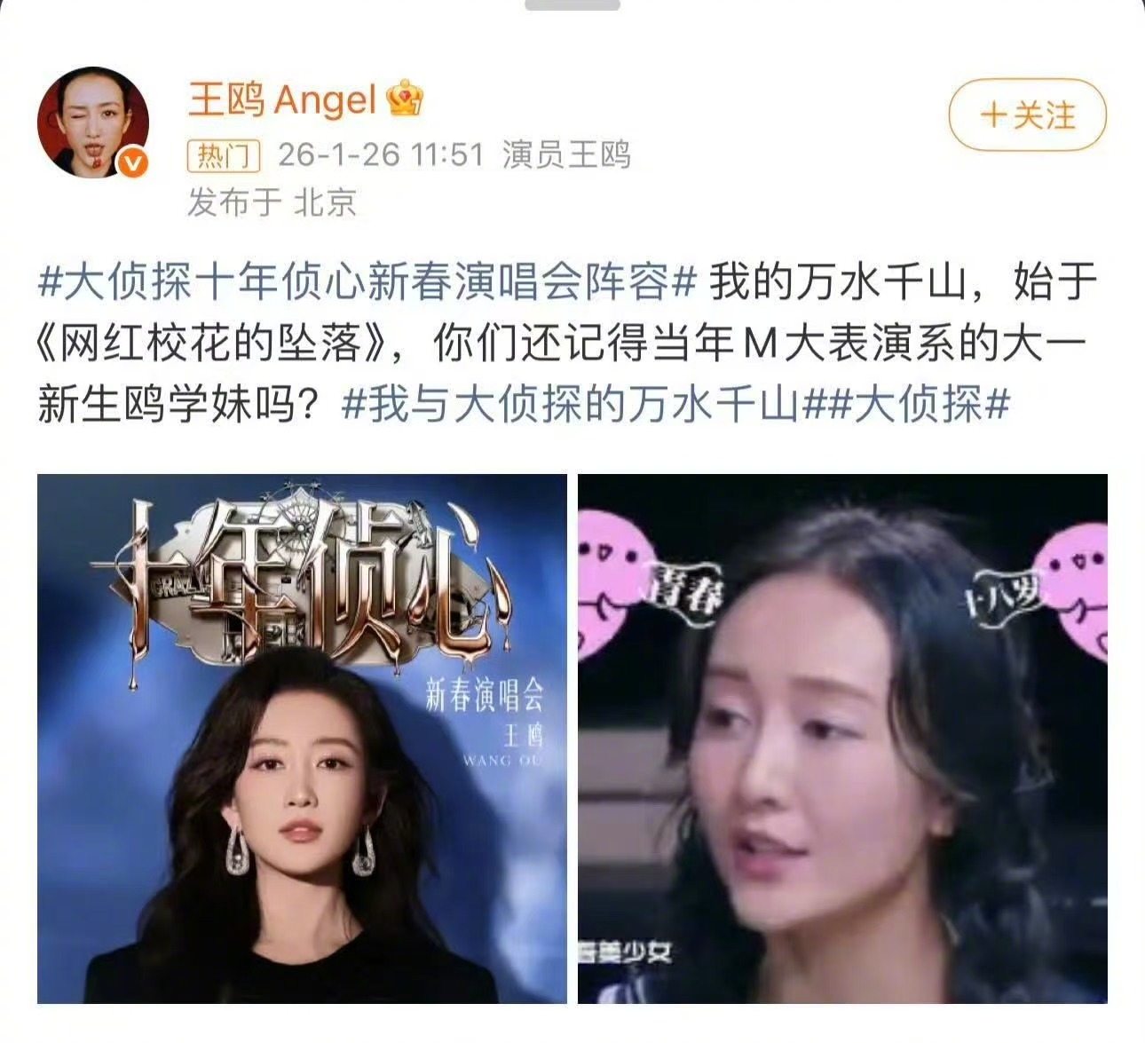 王鸥网红校花时期 回看大侦探初遇名场面,《网红校花的坠落》里的鸥学妹,是刻在记忆里的青春模样,清纯又鲜活,一眼就心动~ 这么多年过去,姐姐早已从青涩小学妹,蜕变为从容优雅的知性姐姐,颜值始终在线!大侦探演唱会,迫不及待和姐姐见面啦~大侦探