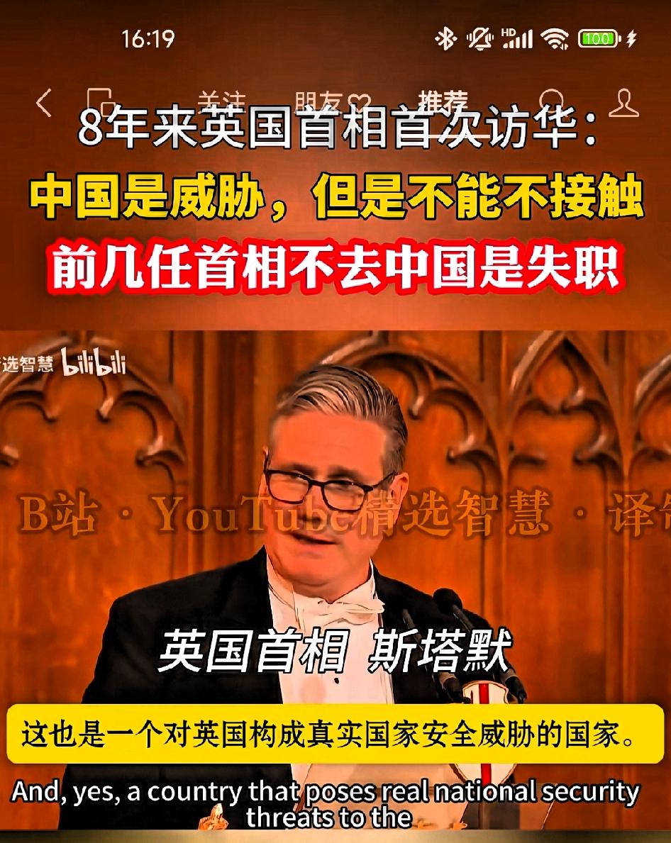 8年来英国首相首次访华:中国是威胁,但是不能不接触!(很复杂的内心) 斯塔默:流行的说法是,中国是一个正在崛起的大国,但如今他已经崛起了。英国需要一套正视这一现实的对华政策,但多年来我们的态度忽冷忽热。是的,这也是一个对英国构成真正国家安全威胁的国家,缺乏接触实在令人震惊,简直是失职。 编者按:的确,英国的内心很复杂,嘴里说着中国是英国的威胁,身体上最诚实。被美国抛弃的滋味只有自己知道,迎着朝阳,拥抱东大是最好的选择。还好,东大不计前嫌,这就是大国的气量!