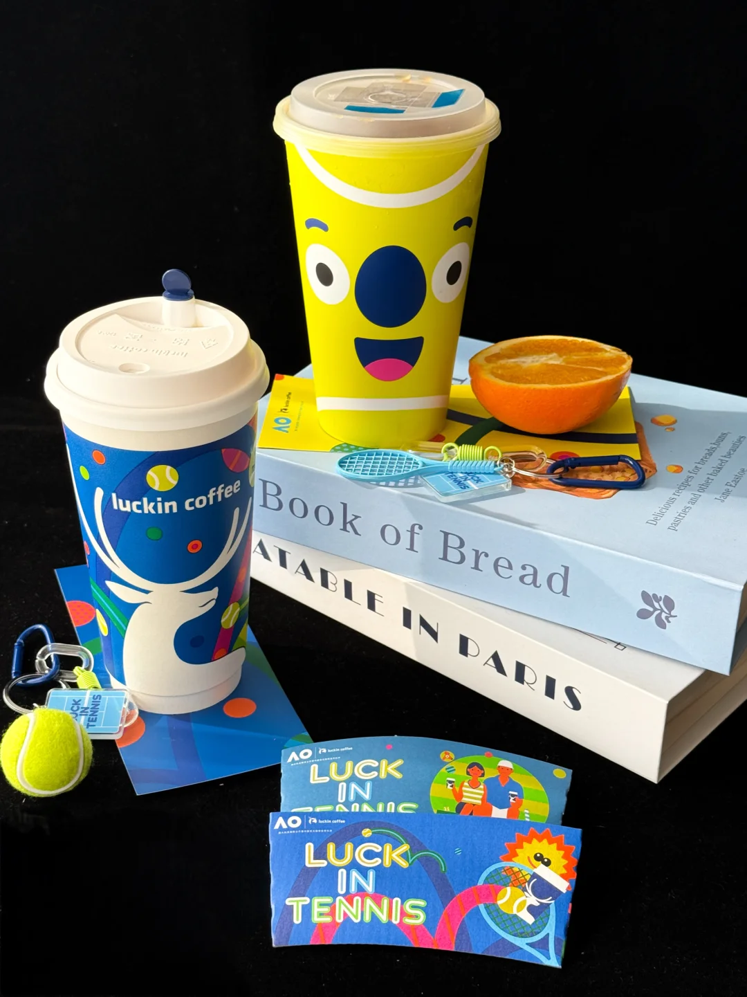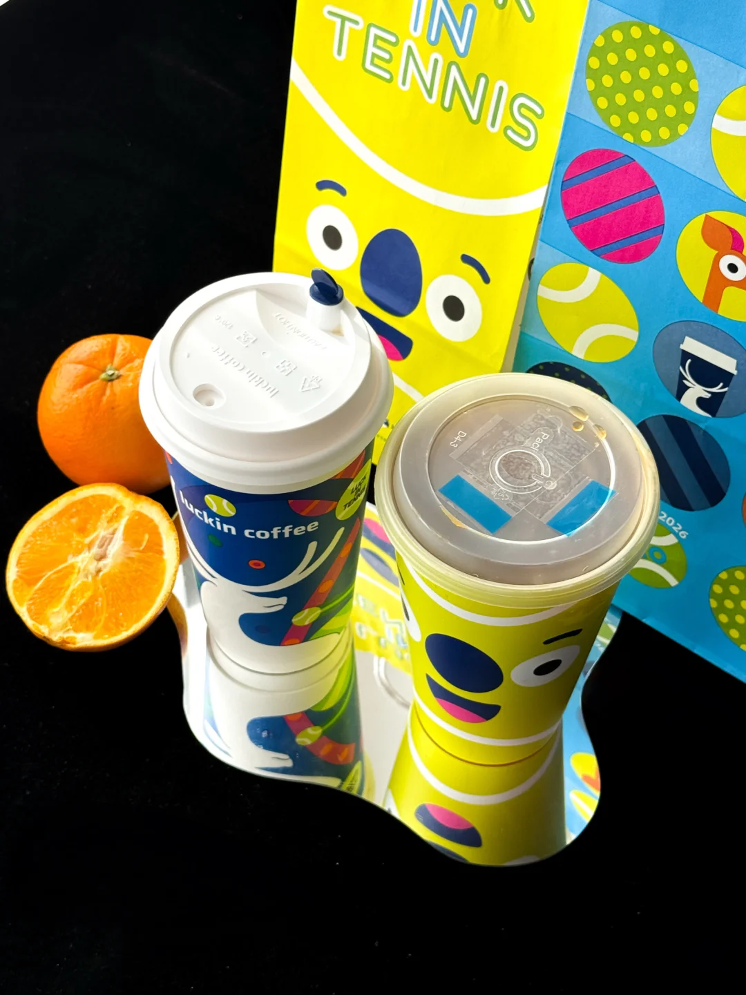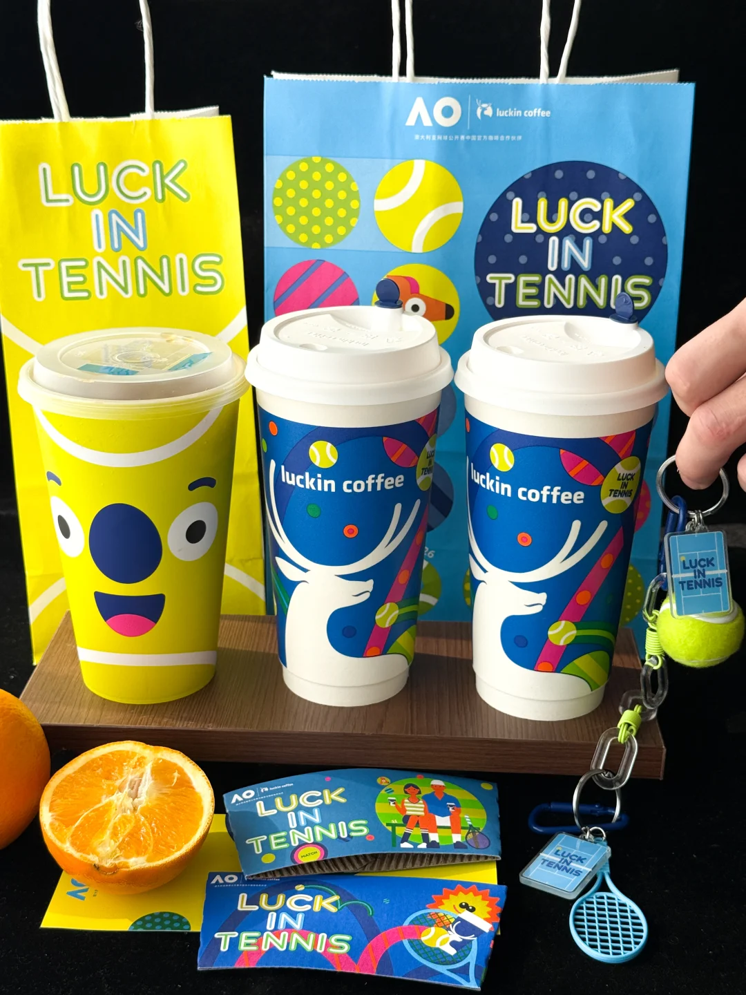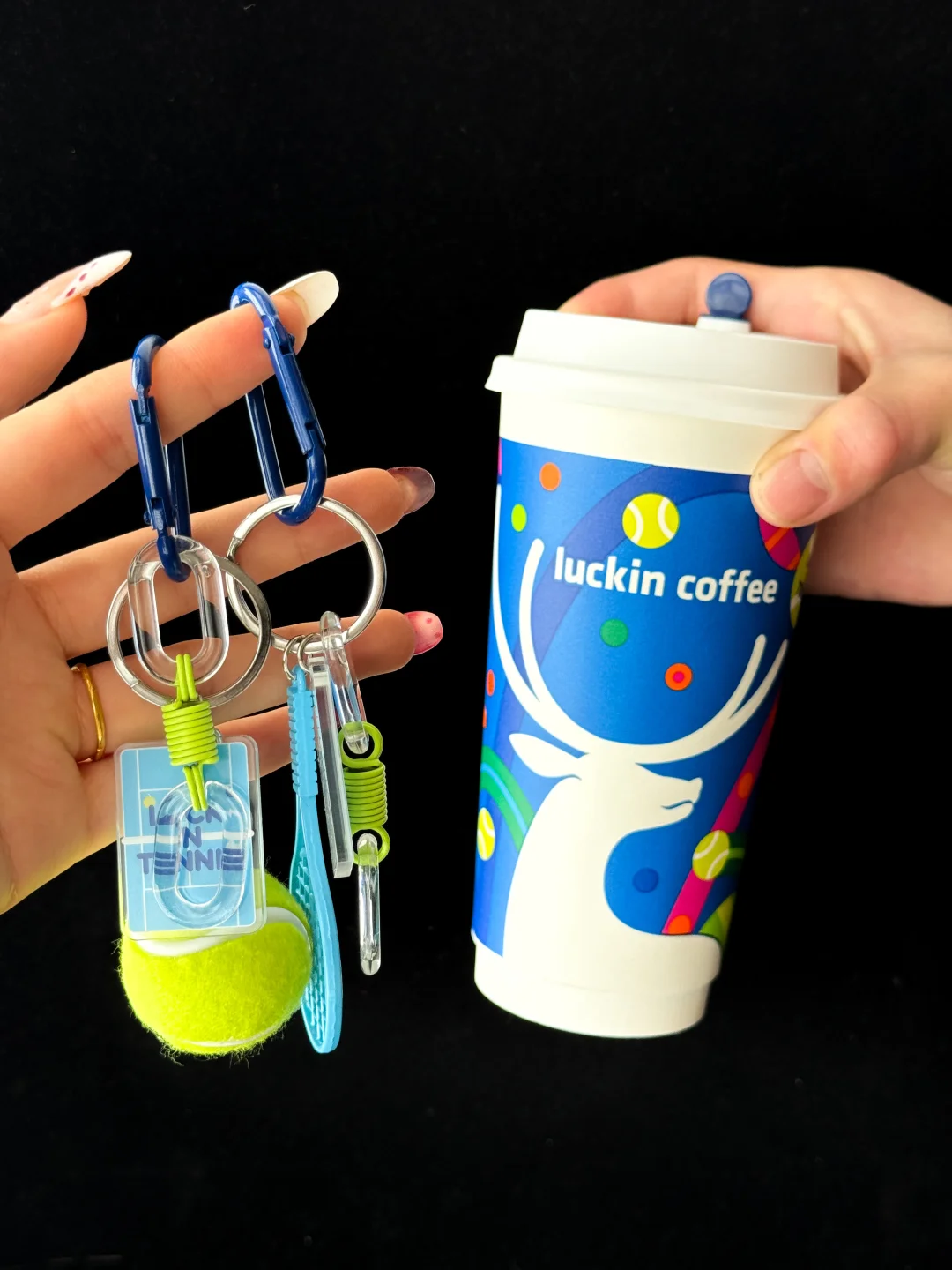 购买升杯还可以领取联名主题杯子,手提袋,和分别带网球🎾和网球拍的挂件哦!!!快