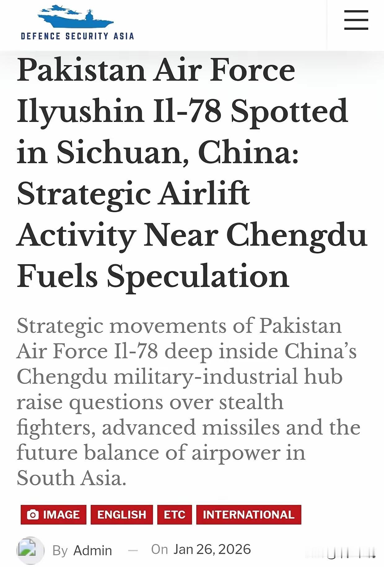 这是要去支援伊朗?巴基斯坦伊尔78飞来成都 近日一架巴基斯坦的伊尔78军用运输机降落成都引发各方面的猜测,伊尔78是巴基斯坦军方最大型的运输机。在伊朗极有可能与美方爆发冲突的关键时刻,巴基斯坦伊尔78降落成都,外媒猜测是巴基斯坦在为支援伊朗做准备。