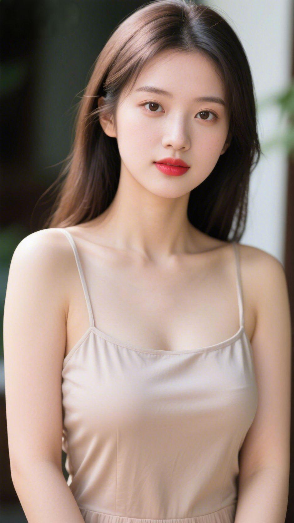 《素衣伴柔光》 浅棕吊带如浸了晨雾的软缎,妥帖衬着舒展的肩颈,让周遭光影都漫开温软气息。她立在朦胧背景里,发梢垂着轻软弧度,唇间淡红像沾了朝露的花,与素衣的温融凝成轻缓模样。 风掠过发梢时,连空气都慢了——没有刻意妆点,只是安静站着,便像把春日柔光揉进眉眼,让人心绪随之轻和。 这素衣的淡,是日常里撞进眼底的温柔:是窗边漫开的一抹轻软,是呼吸间裹着的松弛,连时光都跟着柔缓下来。 素衣轻穿搭 日常柔氛围
