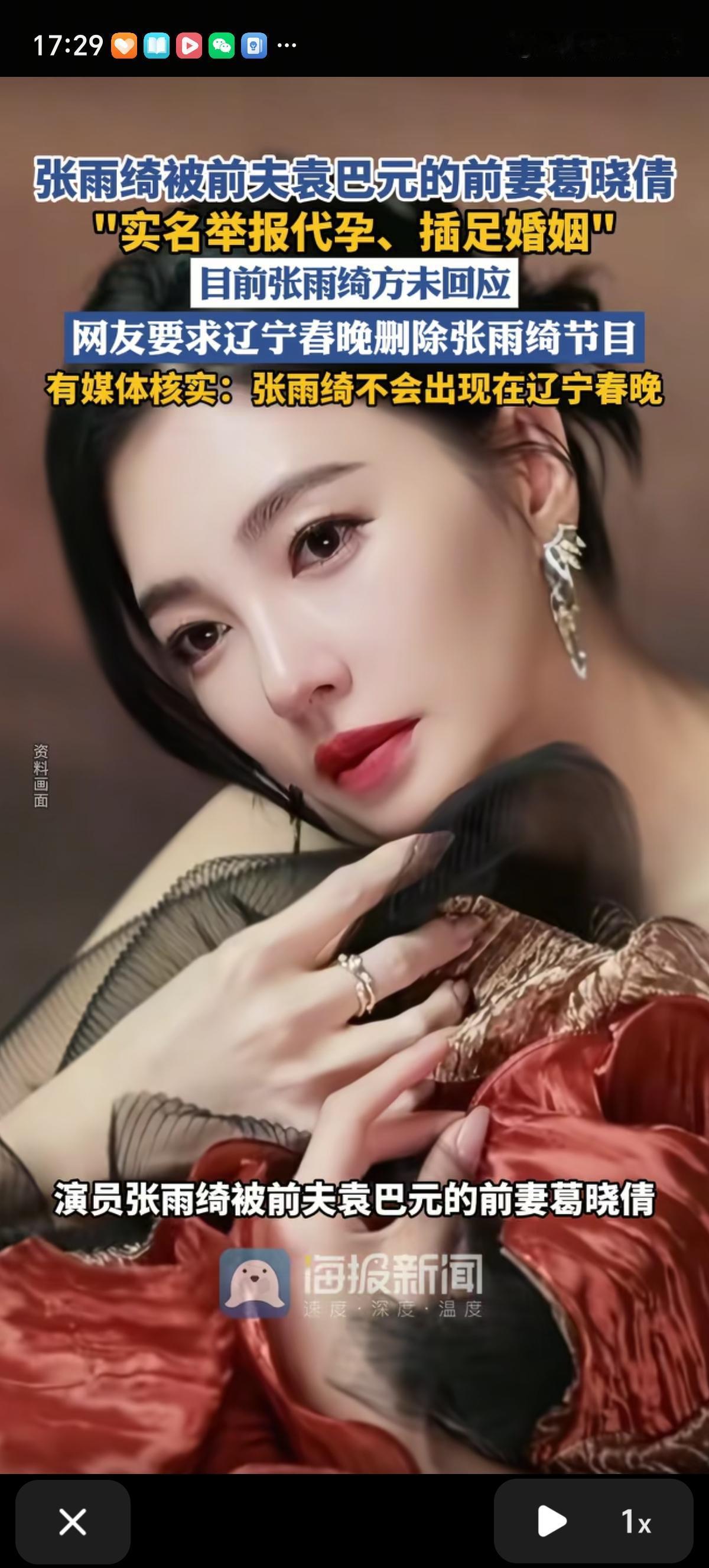 被前夫的前妻举报插足他人婚姻、代孕,这关系真复杂啊。16年的情感纠葛拖延到了26年,辽宁春晚除名了也不出来回应一下。 俩孩子是双胞胎,被指出一个是7月份生的,另一个是10月份生的。葛晓倩说一个是张雨绮生的,一个是代孕的,还出示了孩子的护照,显示出生间隔85天。 16年葛晓倩在外出差,之后通过家中监控发现张雨绮经常来自己家里,跟孩子和保姆呆在一起,还动用了自己的物品。 葛晓倩和袁巴元只举办了婚礼,没领结婚证,还生了一个女儿。葛晓倩表述本来自己是要和袁巴元补办结婚证的,结果袁巴元娶了身怀六甲的张雨绮,还说俩人都是单身。着实影响到了葛晓倩女儿的落户问题,张雨绮表示愿意和袁巴元一起抚养她的孩子,被拒绝了。 24年葛晓倩收到匿名变声电话,对方掌握了她的家庭住址和家人信息,说了“保重”两个字就挂断电话。最后查实是孙性和范性两名律师,其中那名孙性律师疑似和张雨绮关系好。俩律师给她道歉了,说是对她关心过度的粉丝,是通过楼盘信息知道的她住址,其中一个常年为一线艺人提供舆情服务,还和张雨绮同框上过节目。 袁巴元跟葛晓倩的孩子抚养义务问题一直没谈妥,葛晓倩指出其没有稳定支付抚养费,强调其长期拖欠抚养费。 张雨绮的风波真不少啊,之前代言699元商品说“699块我都买不了一双袜子”;“一克拉以下的碎钻都是不值钱的”,再多的风波也没影响她花好几个亿买豪宅。 如今辽宁春晚节目名单上没她了,彩排也取消了,不得不说葛晓倩选的举报时间是又晚又早啊,完美的卡在了过年之前。