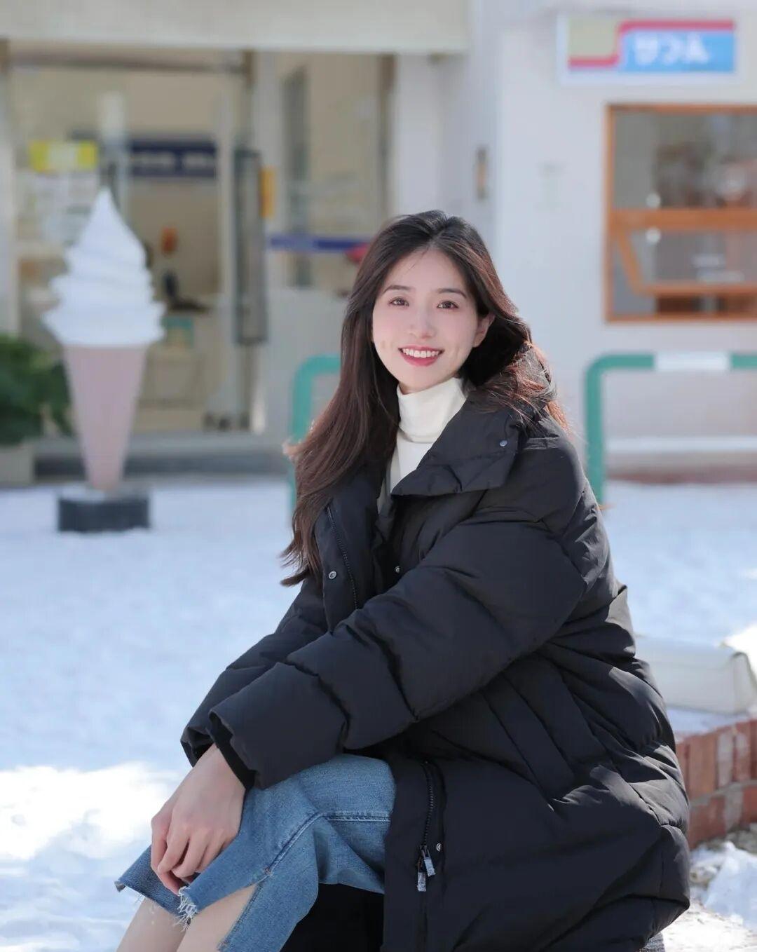 雪地里的奶白羽绒服,这冬日氛围感直接拉满❄️在银装素裹的冰封湖面上,这位冷