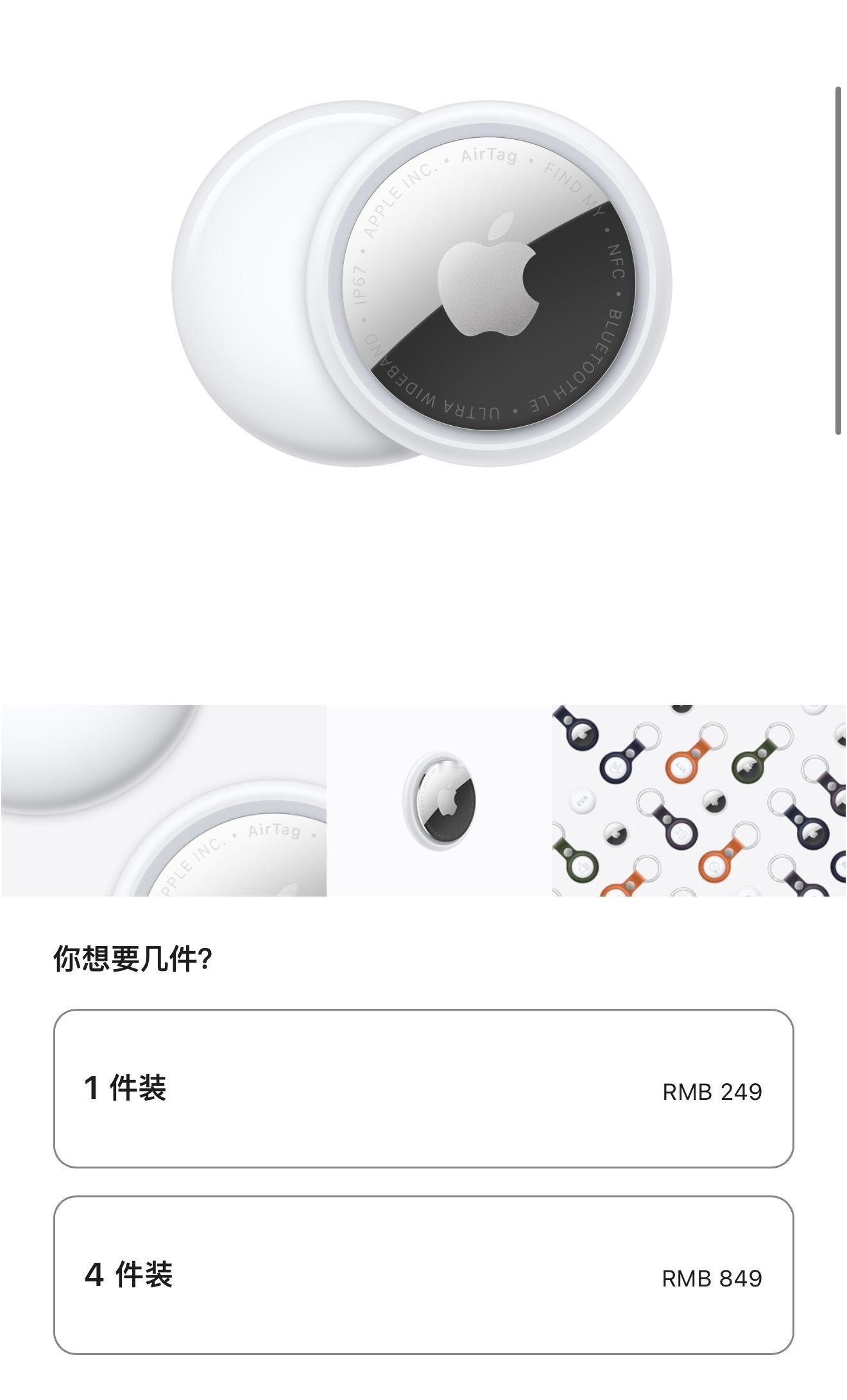 AppleAirtag 突发!苹果发布了最新的Airtag,声音提高了50%,查找范围增加到1.5倍,单个售价249,四个组合价849,大家觉得这价格如何