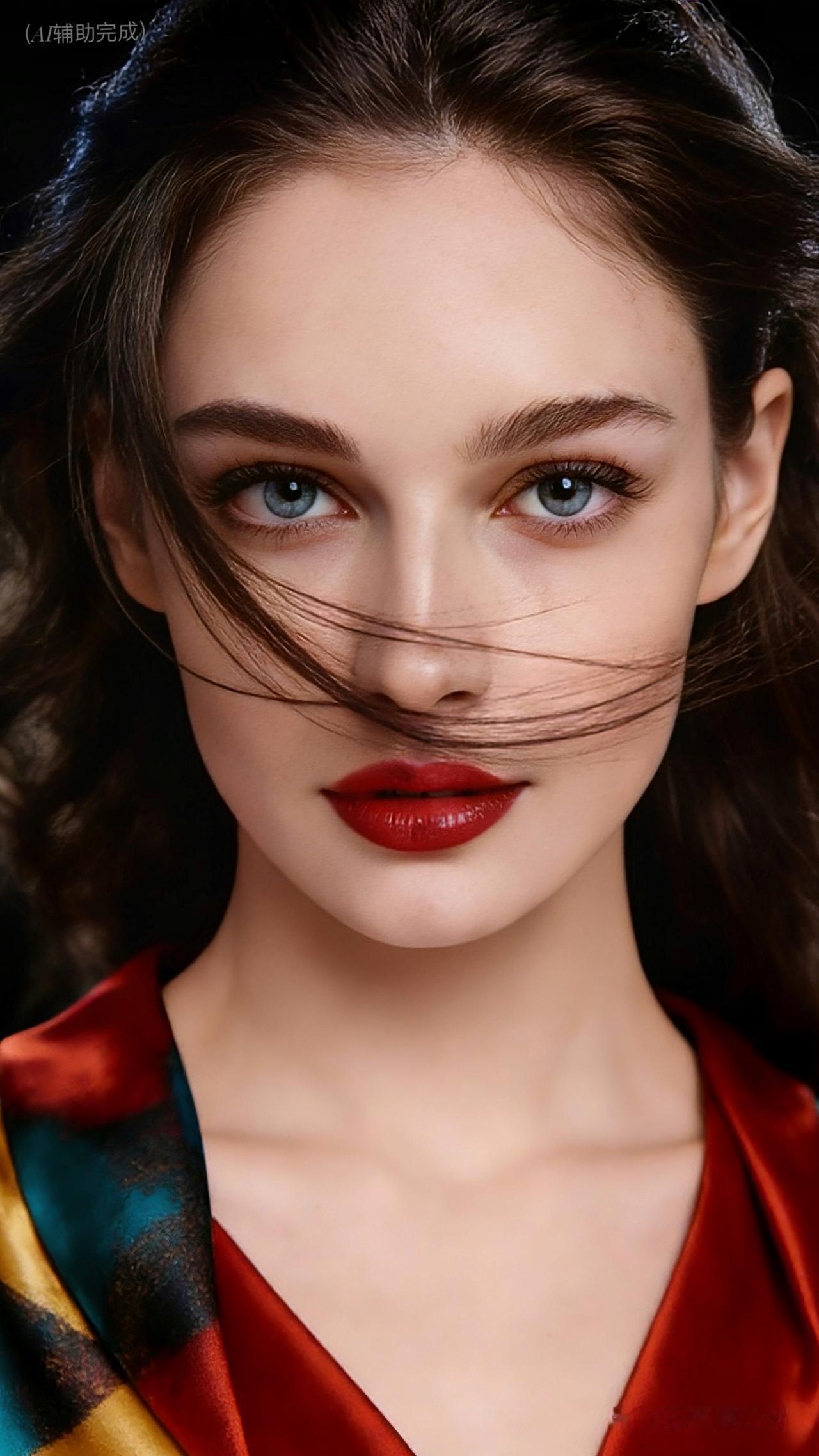九帧同绘高贵仙。乌发卷浪蓝眸藏星,红唇点绛似焰燃。丝衣流彩(红蓝黄金紫)光泽柔裹雅姿,纯黑衬仙韵。发丝拂颊添灵动,优雅神秘漫帧间,一眼沦陷!