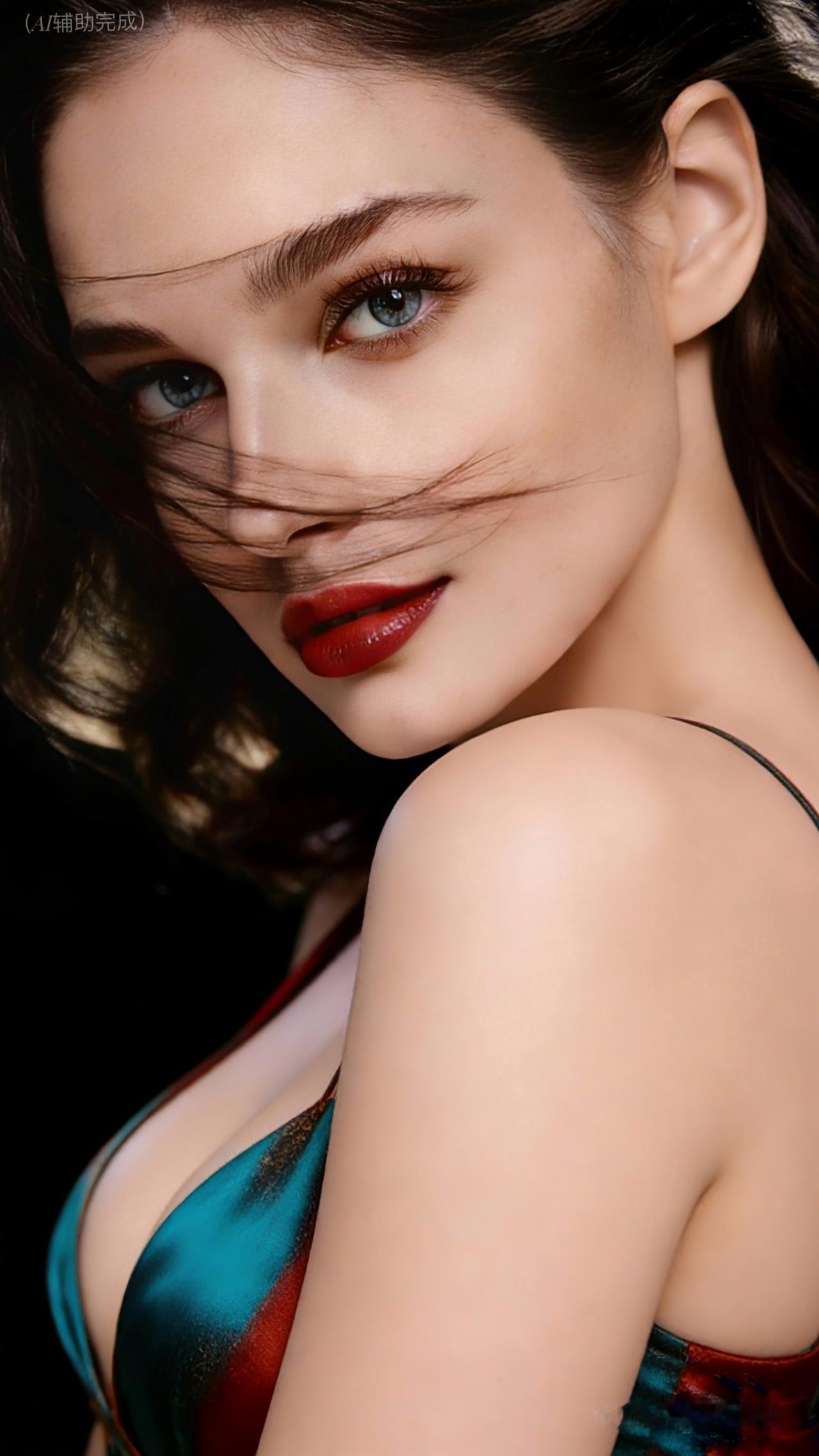 睫卷蝶翼藏星眸,眉如远山含温柔。鼻挺唇樱粉嫩娇,肌肤白皙光影柔。浅淡蓝绿虚化衬,