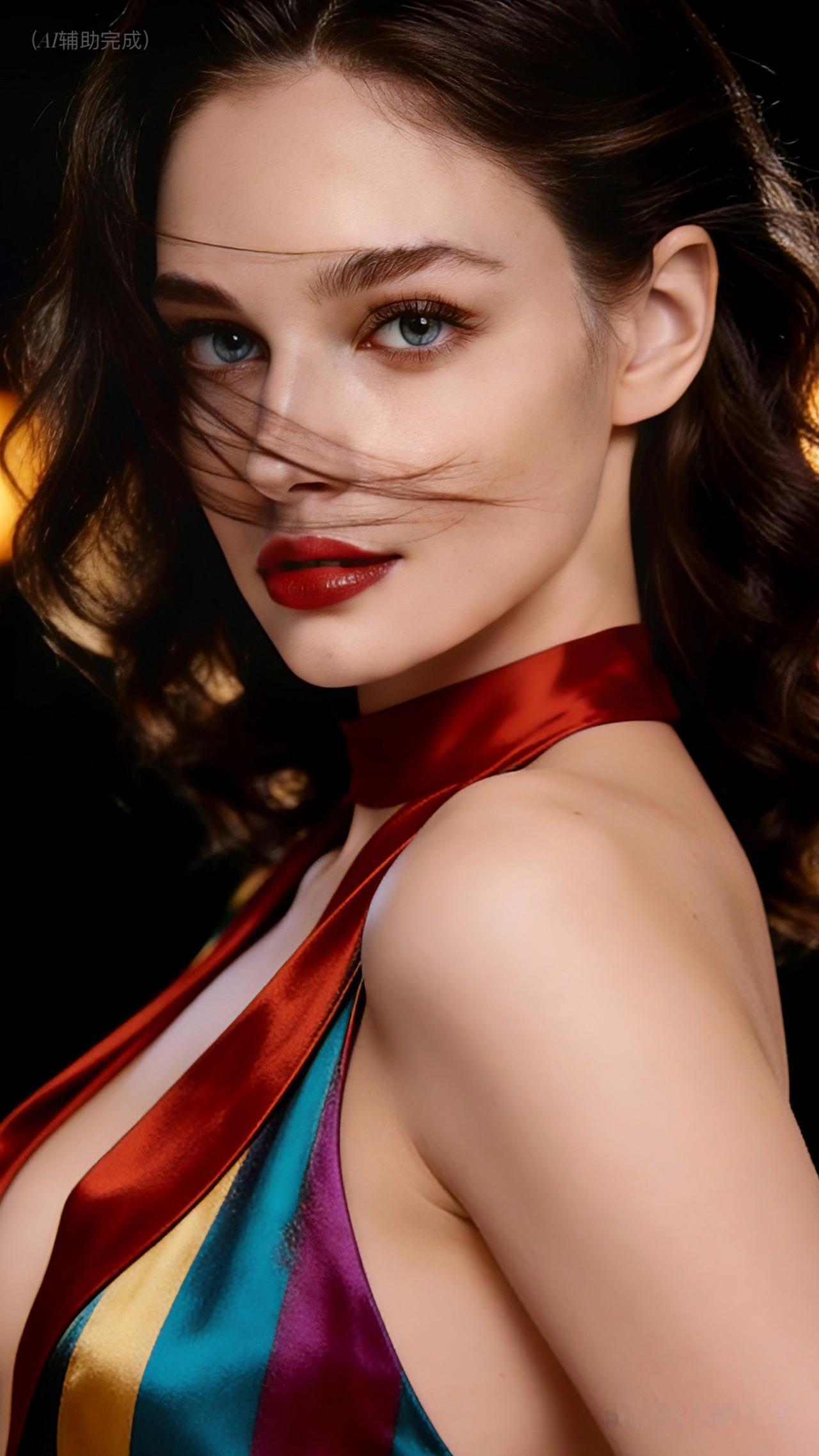 九帧同绘梦幻名媛。幻彩抹胸裙流光溢彩,复古卷发缀璀璨发饰,珠宝项链耳饰相映。眉眼