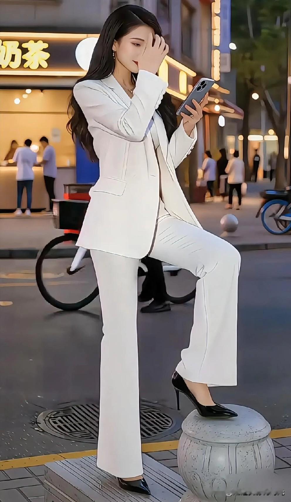 都市白领的优雅瞬间,白色西装搭配高跟鞋,时尚感十足!👠✨