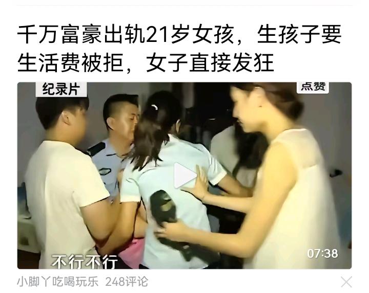 21岁女孩为千万富豪生子,索要抚养费反被指敲诈:清醒时才懂,青春赌不来豪门 20岁的年龄差,甜言蜜语编织的豪门梦,让21岁的罗梅一头扎进了“真爱”的陷阱。 她以为遇上了能给她房、给她车的良人,却不知自己只是富商梁军婚姻外的一抹新鲜。 怀孕后,她没等来承诺的名分,只等来一句“孩子是你自作主张生的,责任自己担”。 孩子出生,她抱着襁褓索要抚养费,富豪却玩起了失踪,甚至反咬一口:“你们这是敲诈!” 当她在镜头下发狂哭喊、晕倒在地时,围观的人只看到一个失控的女人,却没看到她背后的绝望——从被哄骗的天真少女,到未婚生子的单亲妈妈,她用最宝贵的青春,换来了一场始乱终弃的闹剧。 亲子鉴定结果出来了,孩子确实是梁军的,可他依旧躲着不见,只让弟弟出面应付:“法院判多少给多少。” 轻飘飘一句话,就把一个女人六年的青春、一个孩子的未来,推给了冰冷的法律。 罗梅说:“后悔认识他,后悔投入太多。”可惜世上没有后悔药。 那些被“豪门梦”冲昏头脑的女孩,总以为用身体和孩子就能绑定财富,却忘了在有钱人的世界里,感情或许只是消遣,而你赌上的,是整个人生。 评论区聊聊:你觉得罗梅的结局是“咎由自取”,还是“遇人不淑”? 那些出轨的事 豪门抚养费