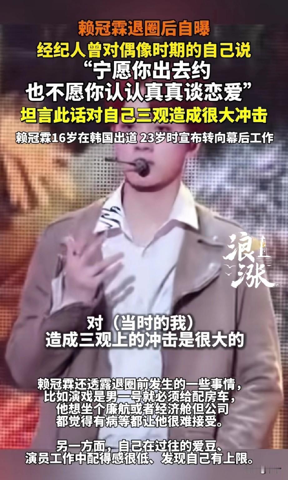赖冠霖退圈后自曝,当时在韩国出道非常受欢迎,他也想好好谈恋爱! 但是他的经纪人