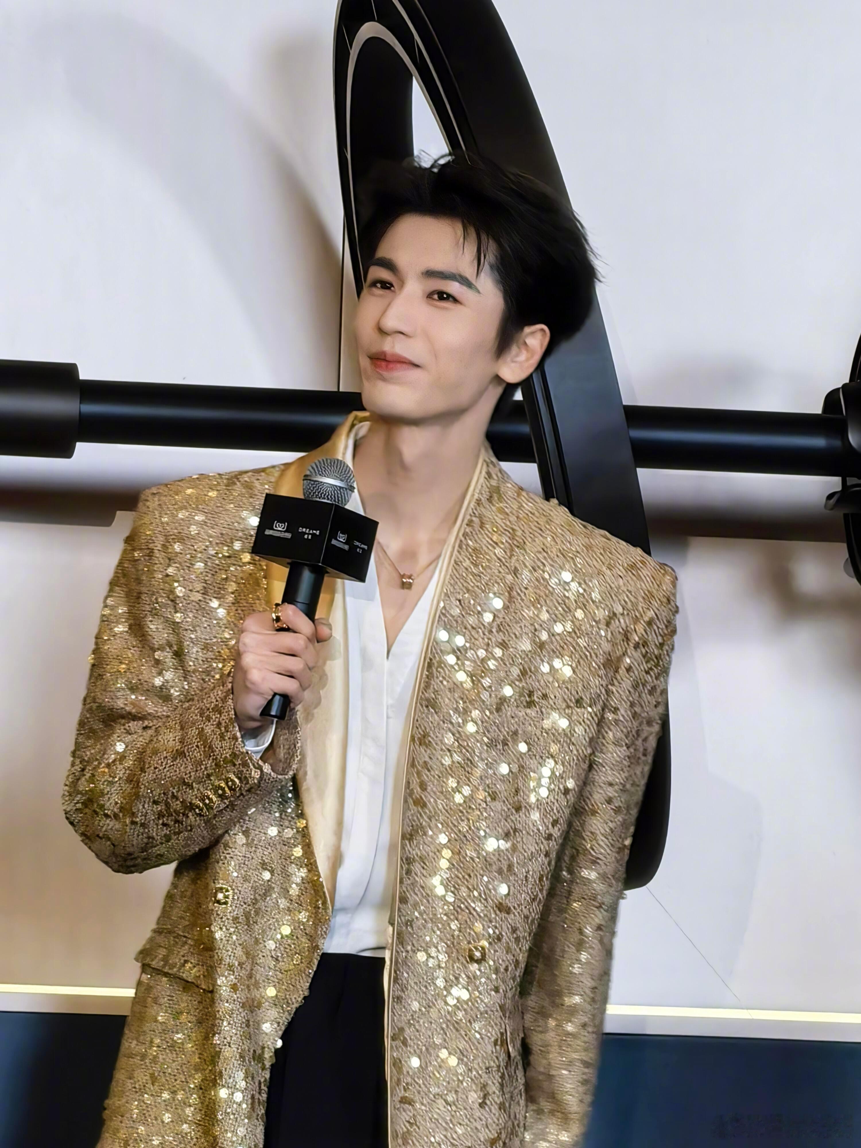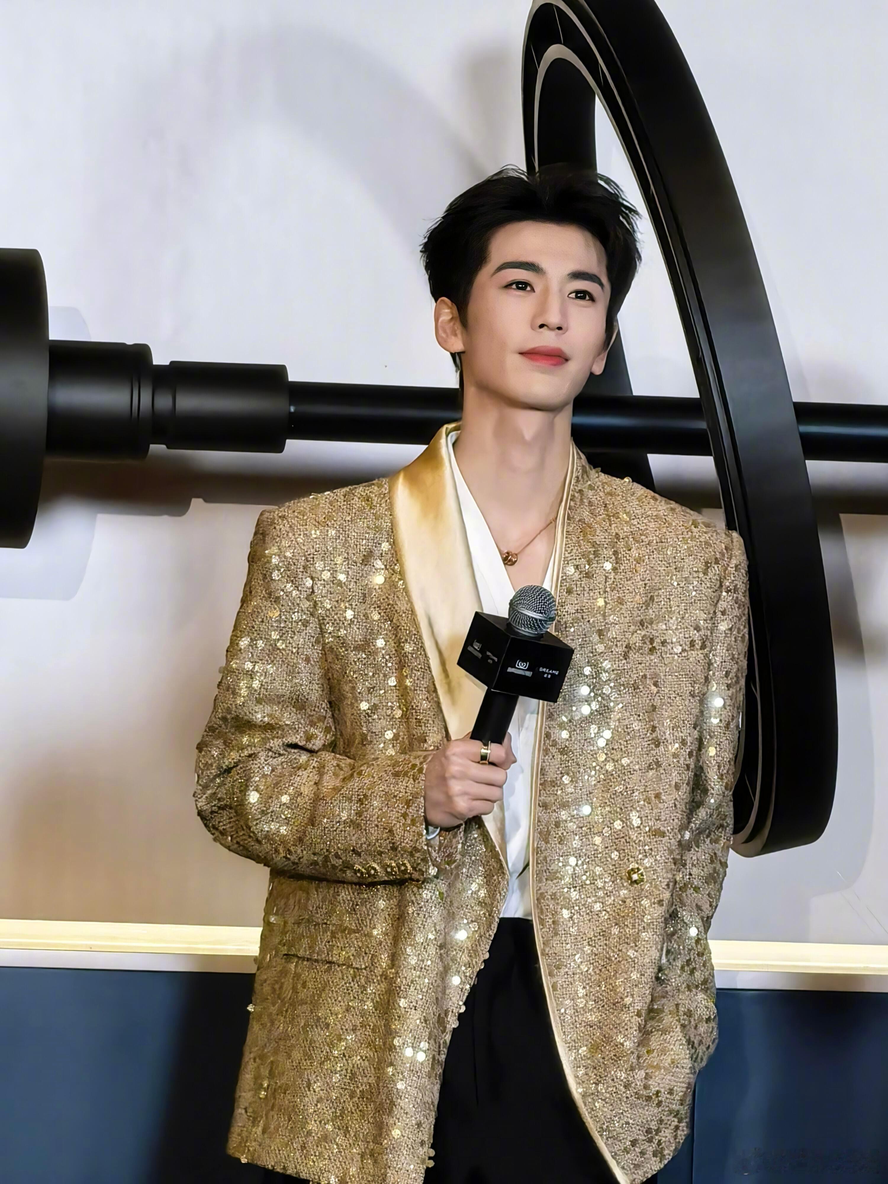男神就是要穿金色,张凌赫顶着女蜗建模脸就出场了 张凌赫苏州线下活动