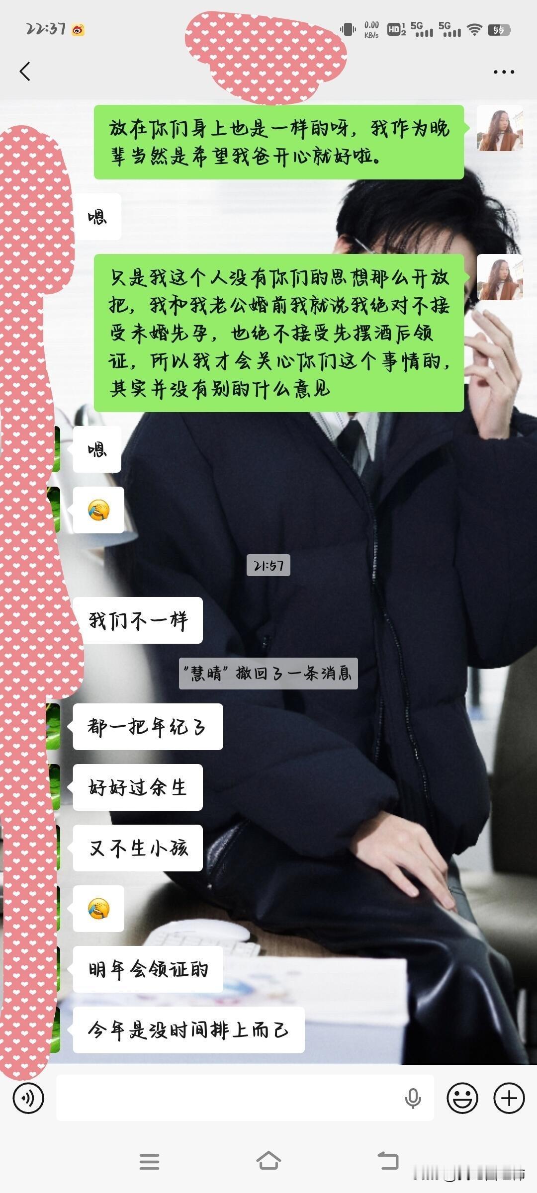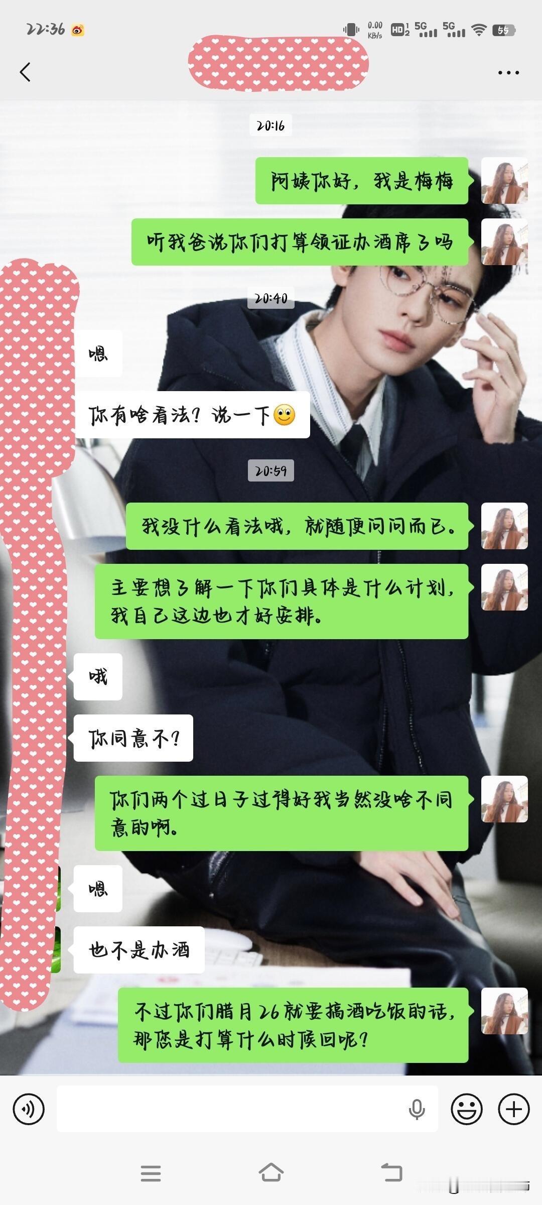 我爸三婚,叫我和老公去吃饭。 以上都是我和我爸那个女朋友的聊天记录,我也不知道该怎么说具体的事情,主要我爸这人吧老被女人骗,谈了很多女朋友,都没成,我爸刮308的,一年马马虎虎还是能挣点钱的,当然了在有钱人眼里这是小钱,但是这些年他是一分钱存款都没有,前几天我说跟他借两千块他居然都没有叫我姑父给我的,我的天,我不明白他的钱都干嘛了?我真的怀疑是不是也花这女朋友身上了,我就是不明白还没领证为什么要摆酒,为什么不能推到明年再办,这么着急干什么,我姑姑姑父包括我妹妹都不太看好这事儿其实不是只有我有疑惑,我就很纠结我要不要去,去的话要给多少红包,我爸还说要我给她的儿子也包个两百的红包,这都合理吗?她儿子比我小几岁,还未婚,我不太懂这些,广大网友能不能给点意见啊😂脑壳都大了
