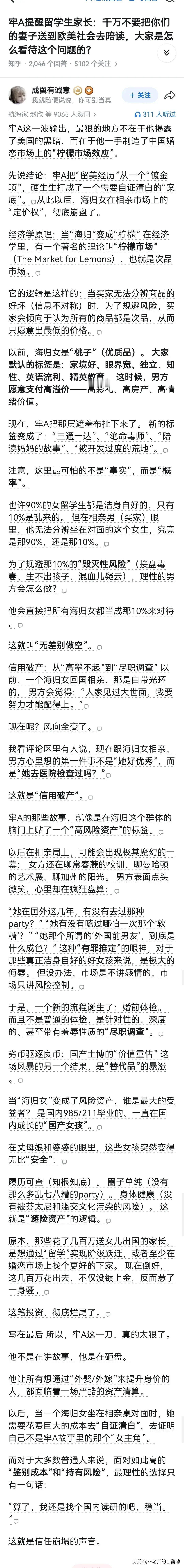 最近“牢A”和“留法小分队”的瓜,真是把人三观震碎了一地。看完那些聊天记录,不得不承认,有些人的私生活混乱程度,简直超乎想象。这哪是去留学深造,分明是组团去“放飞自我”了。说句公道话,绝大多数留学生还是规规矩矩上课、熬夜赶论文的普通人。但没办法,坏就坏在这“一颗老鼠屎坏了一锅汤”。这极少数人的荒唐事,直接拉低了整个群体的口碑。现在网上有人提议,回国找工作、搞婚恋,先亮体检报告和无犯罪证明。这话说得虽然扎心,但也不是没道理。这就跟入职查无犯罪记录一样,身正不怕影子斜,清清白白的人怕啥?这就好比沈腾那个梗,心里没鬼你慌什么?真要是洁身自好,这种要求就是个流程;要是心里有鬼,那自然就跳脚破防了。说到底,还是得自重。别仗着家里有点钱、在国外没人管就胡来,这“滤镜”碎了不可怕,可怕的是连做人的底线都丢了。