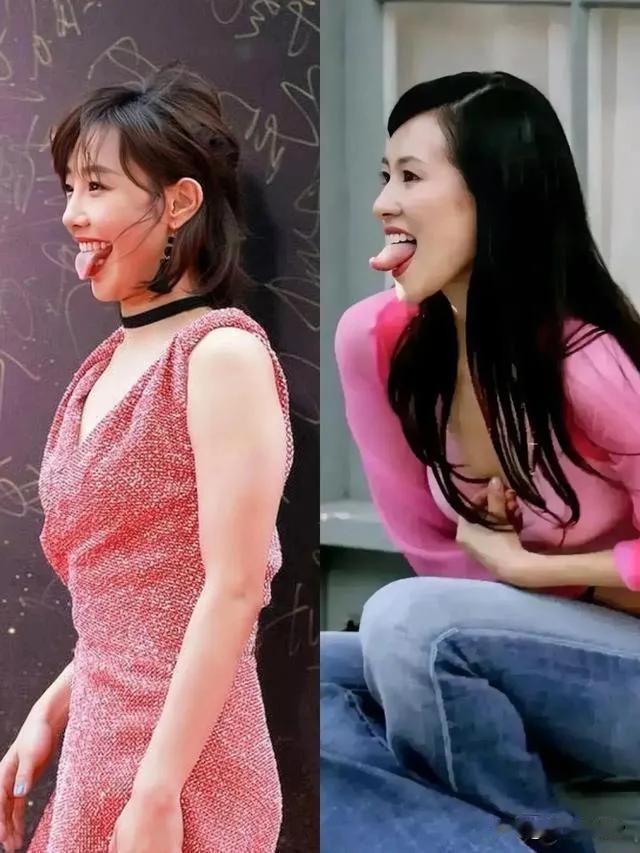 我一直以为,女人吐舌头就是为了表现可爱顽皮和撒娇,被一干人等解读后,有点傻眼了,原来,吐舌头这个不起眼的习惯性动作,竟然蕴含了多种意思。 国内娱乐圈被拍到吐舌头最多的女演员就是下图这二位了。 如果是小孩子吐舌头,那真的就是可爱顽皮和撒娇,如果男人吐舌头,也没有什么太多的感觉,为啥女人吐舌头就会被内涵呢?