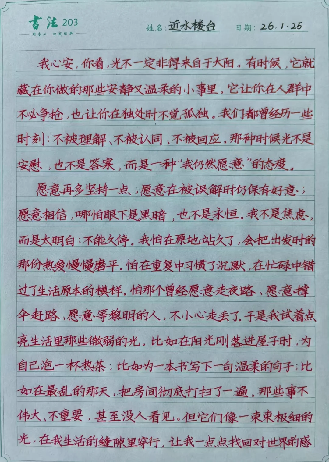 山东济南的快写名师,年入百个,是群里老师学习的榜样,每天坚持写几千字,这样的努力就值得所有人学习。要年入百个,必须有过人之长,要能解决孩子的书写问题,但是很多人被所谓的硬笔书法名家头衔带偏了,误认为考试的写法就是硬笔书法的写法,全国的头部硬笔书法名家,他们和高三学生一起考场书写的话,最多是中等卷面。楷书快写