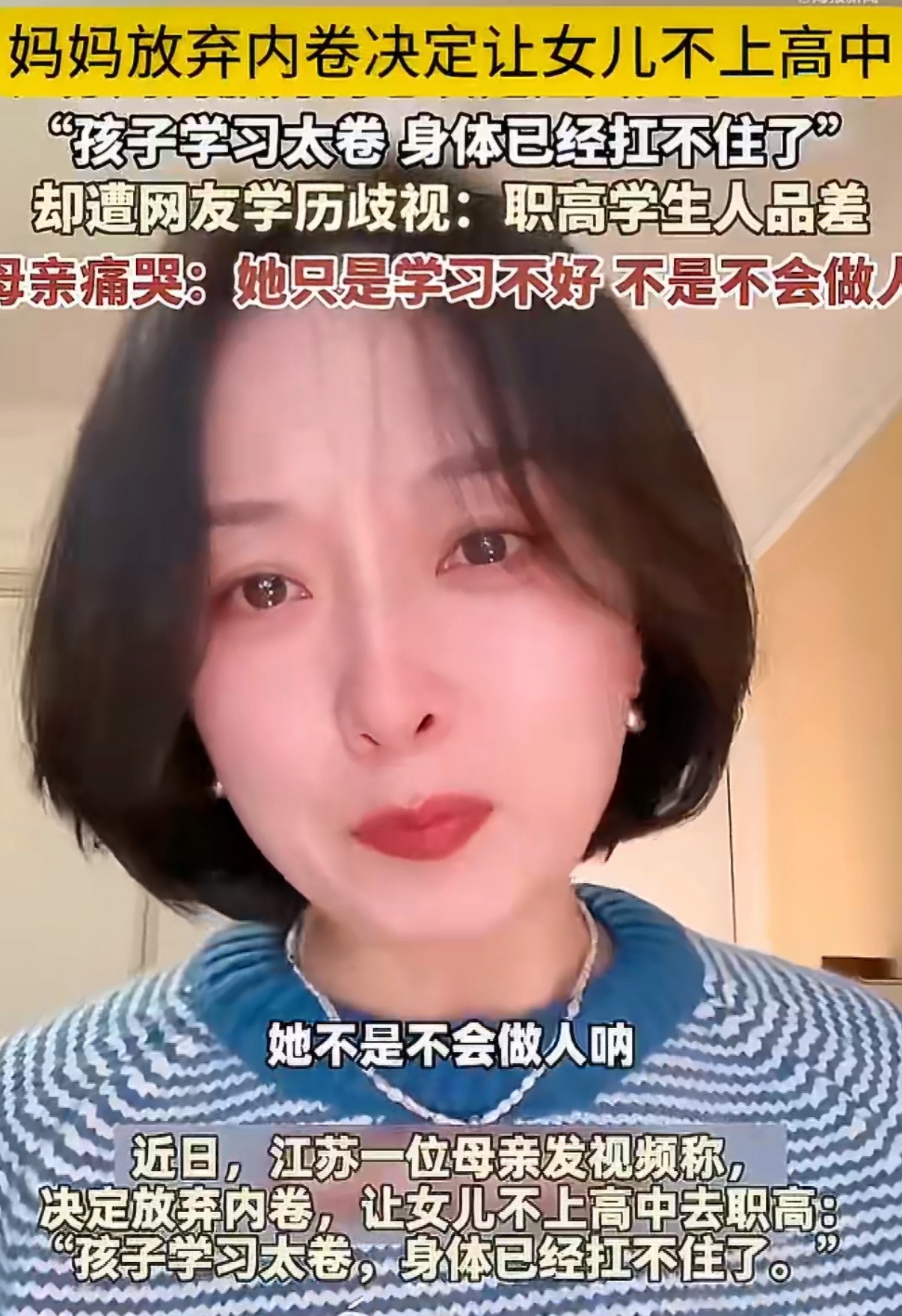 妈妈称学习太卷决定让女儿不上高中不是对职高有偏见,相比正式高中,那里的学习环境确实不行。你相信你的孩子,但我更相信环境改变人,我觉得作为父母还是要慎重考虑。