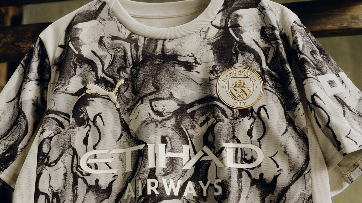 曼城新球衣酷似生蚝 曼城今天官方发布马年球衣,该款球衣的设计受中国水墨画影响,附有素描风格马匹图案。不过,我懂评论区出现了这样一张图曼城英超联赛