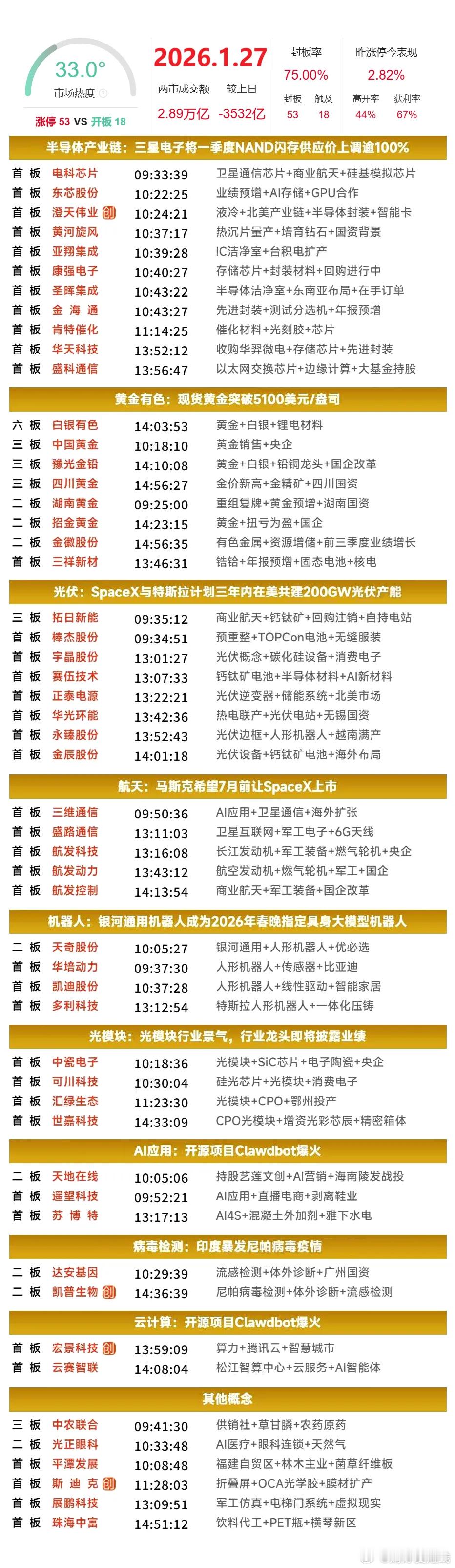 1月27日涨停榜