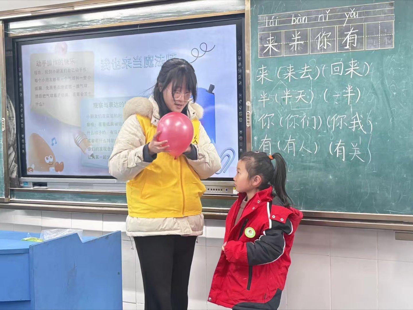 秦岭笑谈 【静电启趣探奥秘,科学润泽乡土间】曲阜师范大学三下乡寒假社会实践 为响应国家加强青少年科学教育的号召,12月31日,曲阜师范大学“教泽润童心,科普筑新知”实践队,走进曲阜市民族小学,开展“静电魔法”主题科普活动。课堂中,志愿者以生活中常见的气球与纸屑为道具,通过摩擦生电、静电吸附等直观现象,引导孩子们亲手操作、自主发问。实验环节气氛活跃,孩子们在惊呼与欢笑中切身感受科学的神奇。活动有效激发了乡村学子对科学的好奇与热情,为促进科普资源均衡化、推动科学教育扎根基层提供了生动注脚。