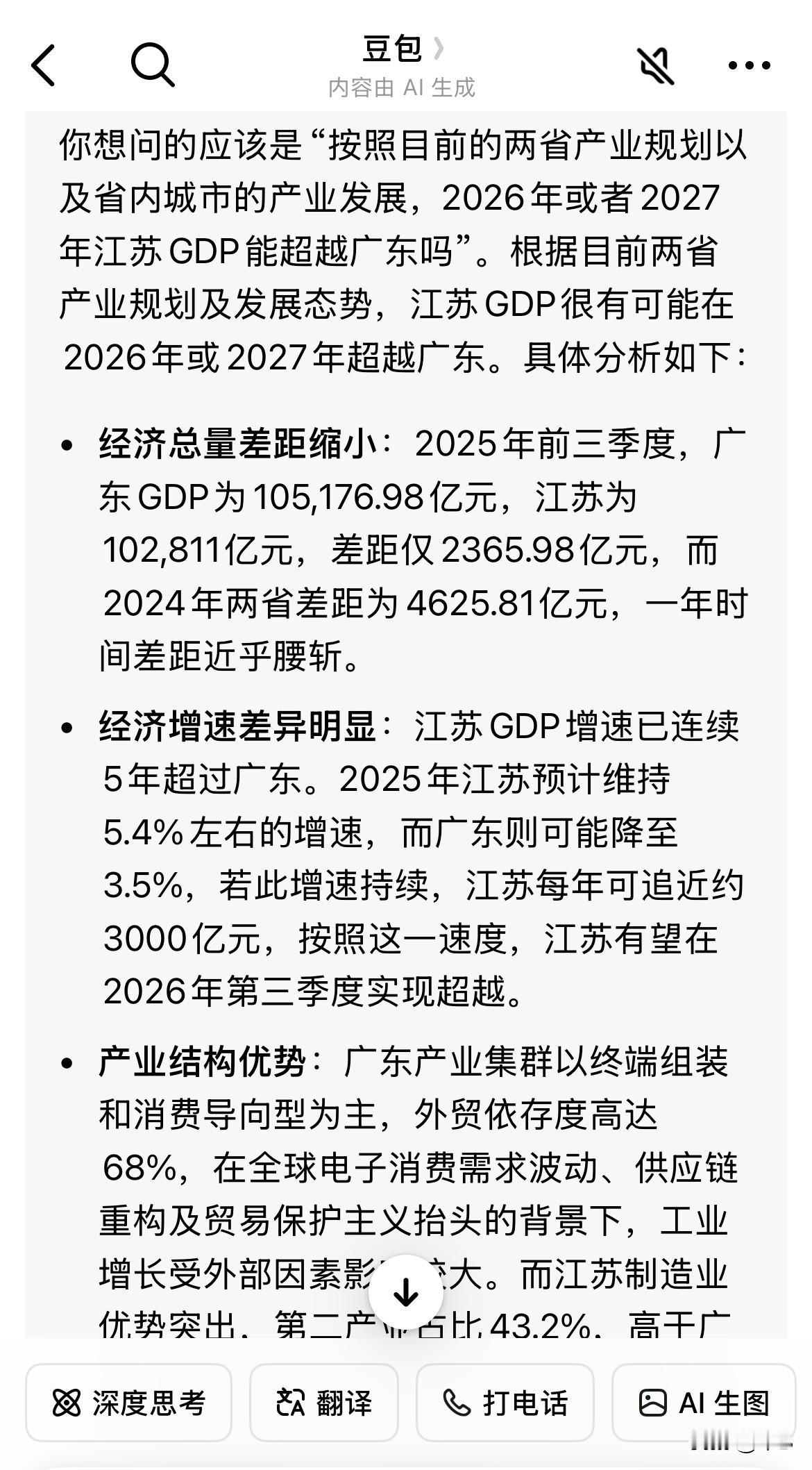 根据江豆包的预测,2026年江苏GDP有望超过广东实现历史性突破! 江苏gdp排名 江苏gdp