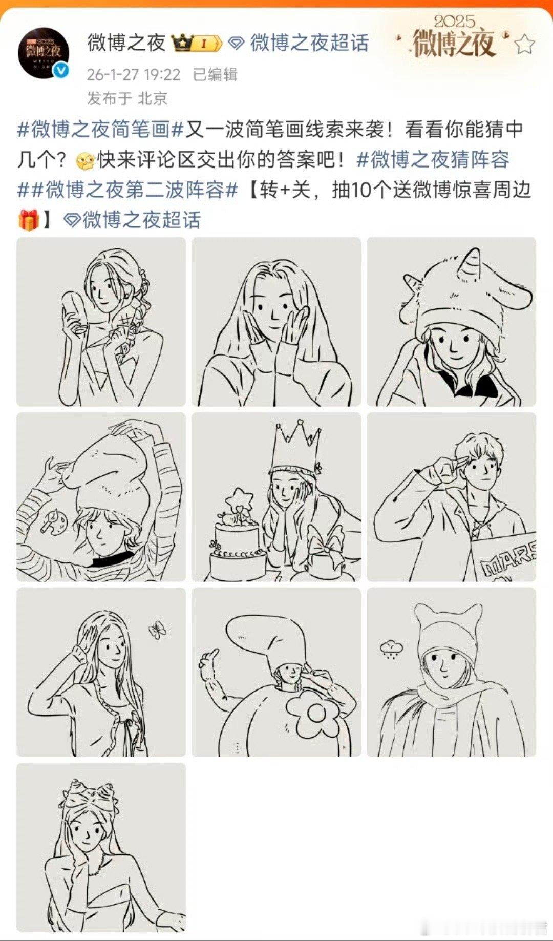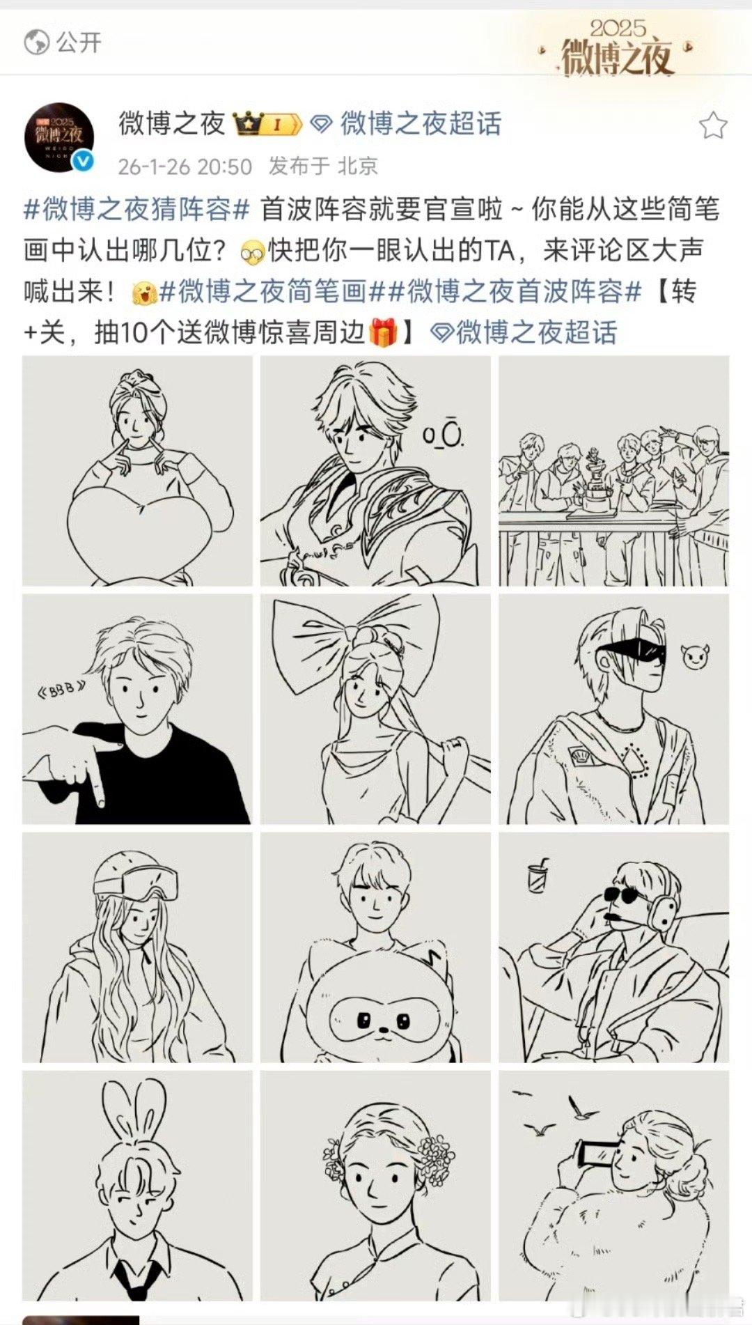 微博之夜到底还有谁在啊 一年一度“内娱团建”现场即将开启!微博之夜用简笔画官宣创意十足,陈妍希的饺子梗、刘宇的李白造型、程潇的猫系魅力……第一批阵容就已亮点满满,后续还会有什么惊喜?