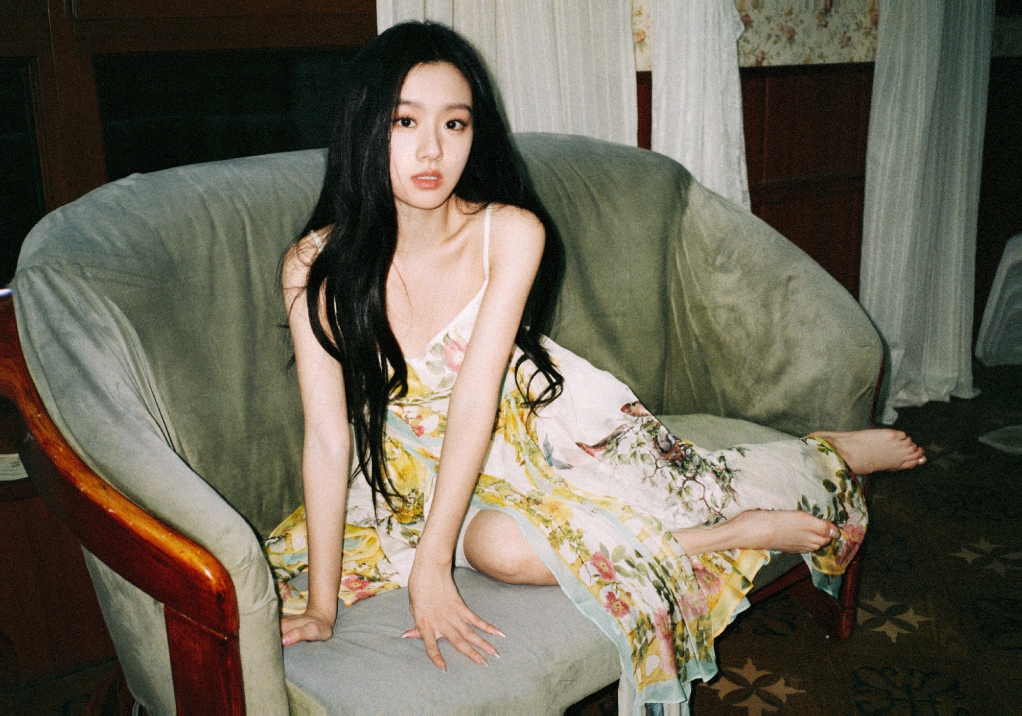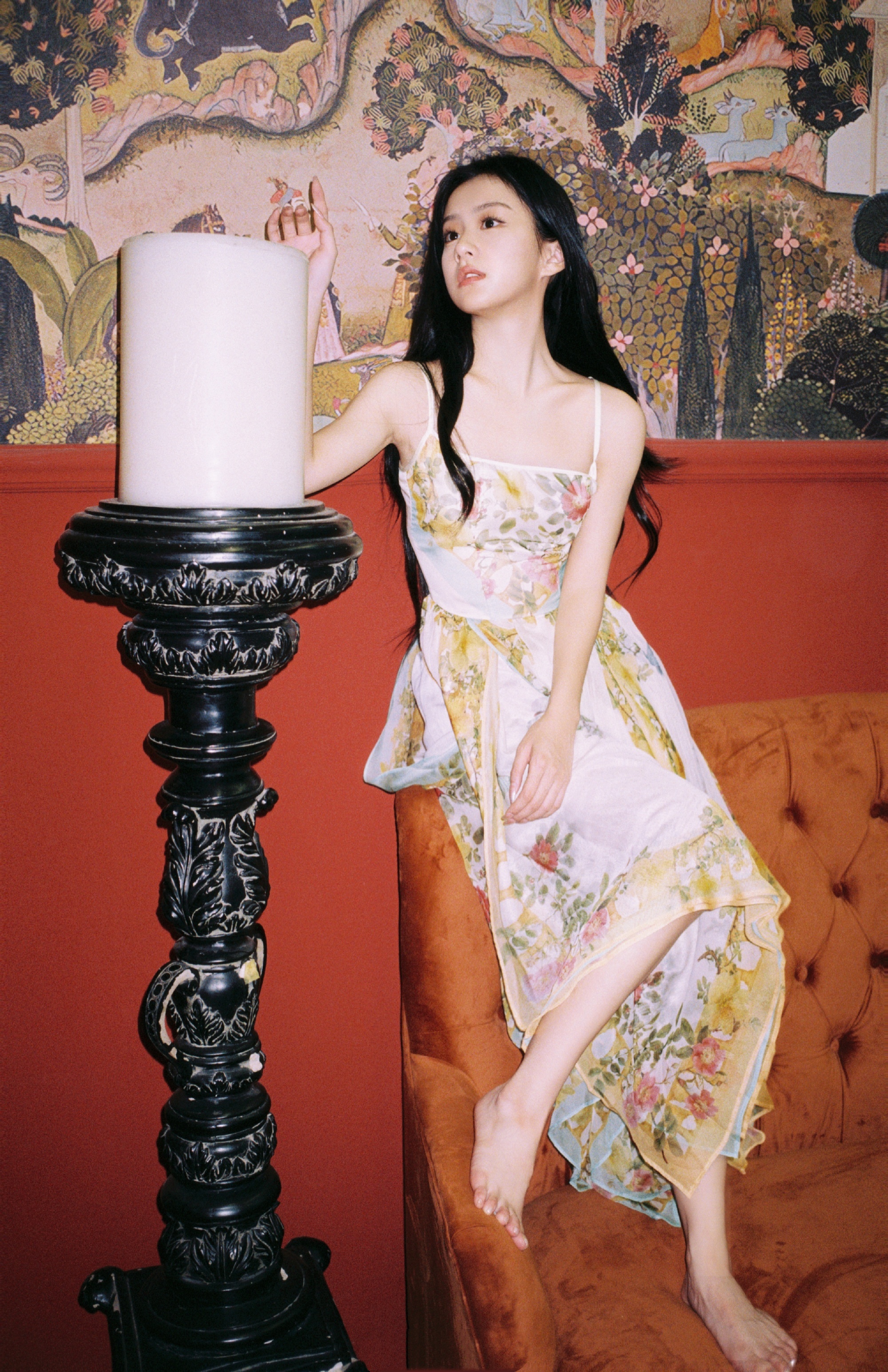 包上恩的少女感:吊带花裙纤纤美腿,一眼难忘。包上恩